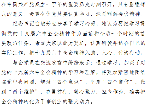 汲取砥砺奋进的精神力量——行政一支部召开党员大会传达学习党的十九届六中全会精神