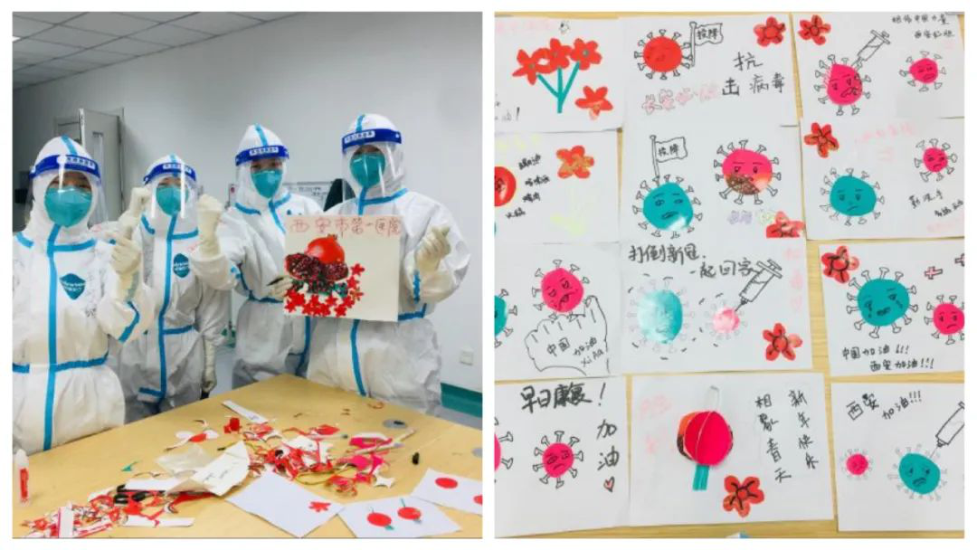 投入日常工作两月余,西安的抗疫战役打响了。她有条不紊协调完成好科室各项工作外,积极报名参加了院内的核酸采样队,先后支援浐灞、碑林区核酸采样。12月25日,医院组建支援定点医院医疗队,这一次,她带着更加坚定的信念第一时间报名参加定点医院收治工作。因为她说:“这次我有实战经验,我完全符合条件,我必须去。我是党员,我必须去!”报名后,她更是驻扎在医院,参加医院战前准备工作,控感培训、体检等等。作为小组长,带领组员一遍又一遍地练习防护服的穿脱,确保人人掌握、人人熟练、为做好个人防护打下牢固的基础。作为护士长,她带领心内五病区共计5名医护人员参加抗疫医疗队,为队员们准备生活物资,确保大家无后顾之忧,同时为大家做心理疏导,缓解队员们因为对病毒的恐惧、对未来工作的一无所知而引起的焦虑、不安情绪。