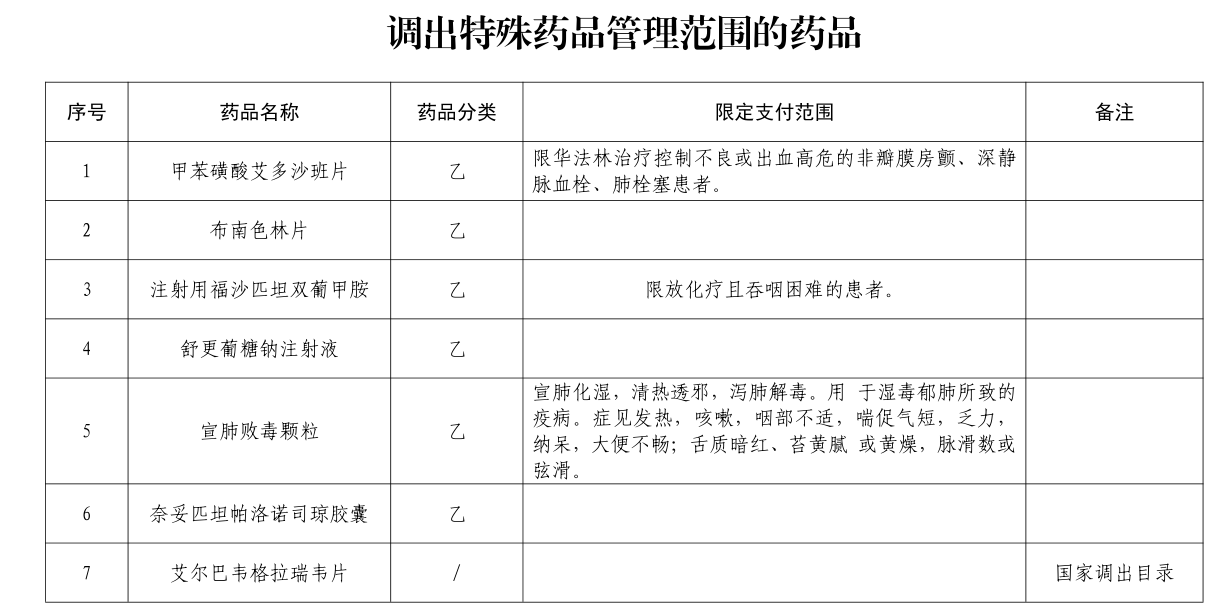 调出特殊药品范围的药品