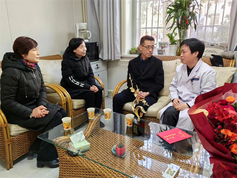 1月24日上午,西安市总工会副主席王向平、市教科文卫工会主任杜明琴等一行来到啄木鸟 ,看望慰问陕西省先进工作者神经内科主任吴松笛,市第一医院纪委书记谢聪敏及相关职能部门人员陪同。