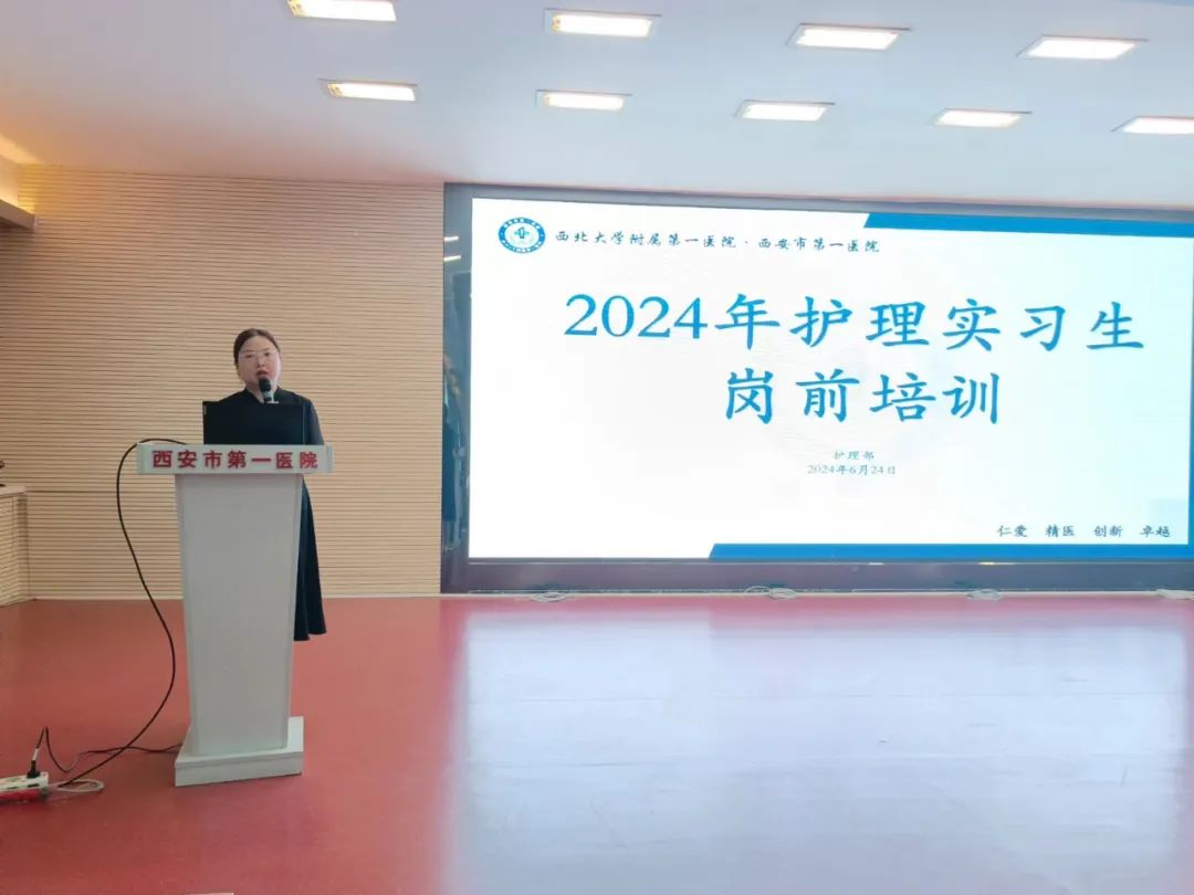 为进一步规范护理实习生管理,提升临床护理教学质量,帮助实习生尽快完成角色转换,护理部于2024年6月24日成功举办了2024年度护理实习生岗前培训。培训开始,护理部任燕萍主任对所有实习生的到来表示热烈欢迎,并强调了实习对于护理工作的重要性。她指出:“护理实习生不仅是医院未来的骨干力量,更是连接患者与医疗团队之间的桥梁。我们希望通过这次培训,使大家能够深刻理解护理工作的意义,掌握必备的专业技能。”