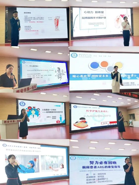 比赛开始,八位选手依次上场,她们就护理诊断、护理操作技能、疾病护理要点等多个主题进行了生动精彩的授课演示,运用多样化的教学手段,寓教于乐,既保证了知识传授的专业性,又激发了听众的学习兴趣。