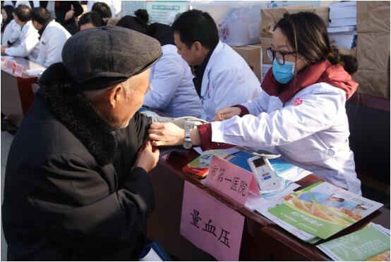 一行人员准时赶到医院大门,统一出发。到达现场后,大家拉横幅、搬桌椅、清点药品器械,摆放宣传板,忙得不亦乐乎,当地群众也都陆陆续续赶来。专家们发挥医学专长,为群众测量血压,讲解日常生活小知识,帮助现场群众树立健康的生活观念。直到中午12:00现场前来就诊的市民仍然络绎不绝,大家依然耐心的为每位患者诊疗,据统计,当天接待咨询的群众200余人,为群众测量血压100人次,建议进一步检查和治疗的约20人次,并在现场捐赠、发放医疗宣传书籍200余册、棉签4.5万支、注射器5400支、输液器1000支、漏斗车1辆、人体秤1台、病床5张、避孕套100盒、各类药品若干。