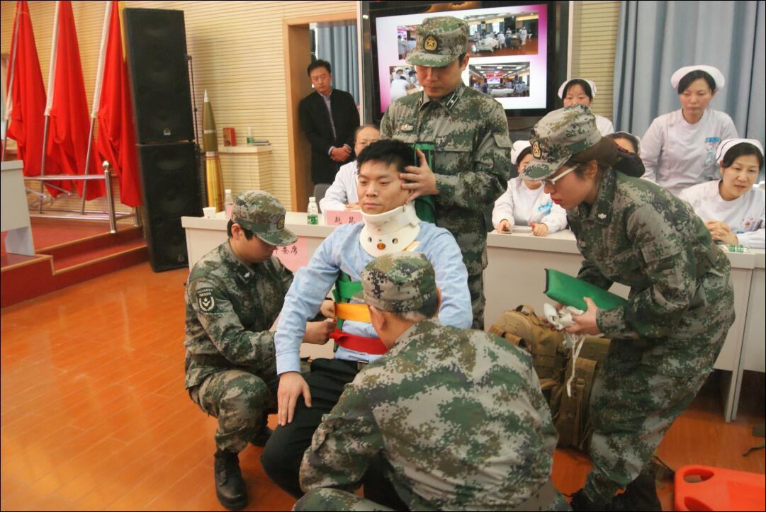 急救队给大家做了一场精彩的演练。只见他们身穿迷彩服,精神抖擞的走上现场,心肺复苏,骨折固定,特殊伤口包扎,腰椎骨折患者转运等急救操作动作娴熟、迎来一阵阵喝彩!将大赛推向高潮。