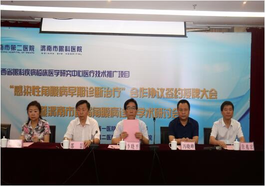 与渭南市第二医院、合阳县医院、陕西省荣誉军人康复医院、潼关县医院、渭南市华州区人民医院共同举办了“感染性角膜病早期诊断治疗”合作协议签约、授牌大会,大会由渭南市第二医院承办并隆重召开。