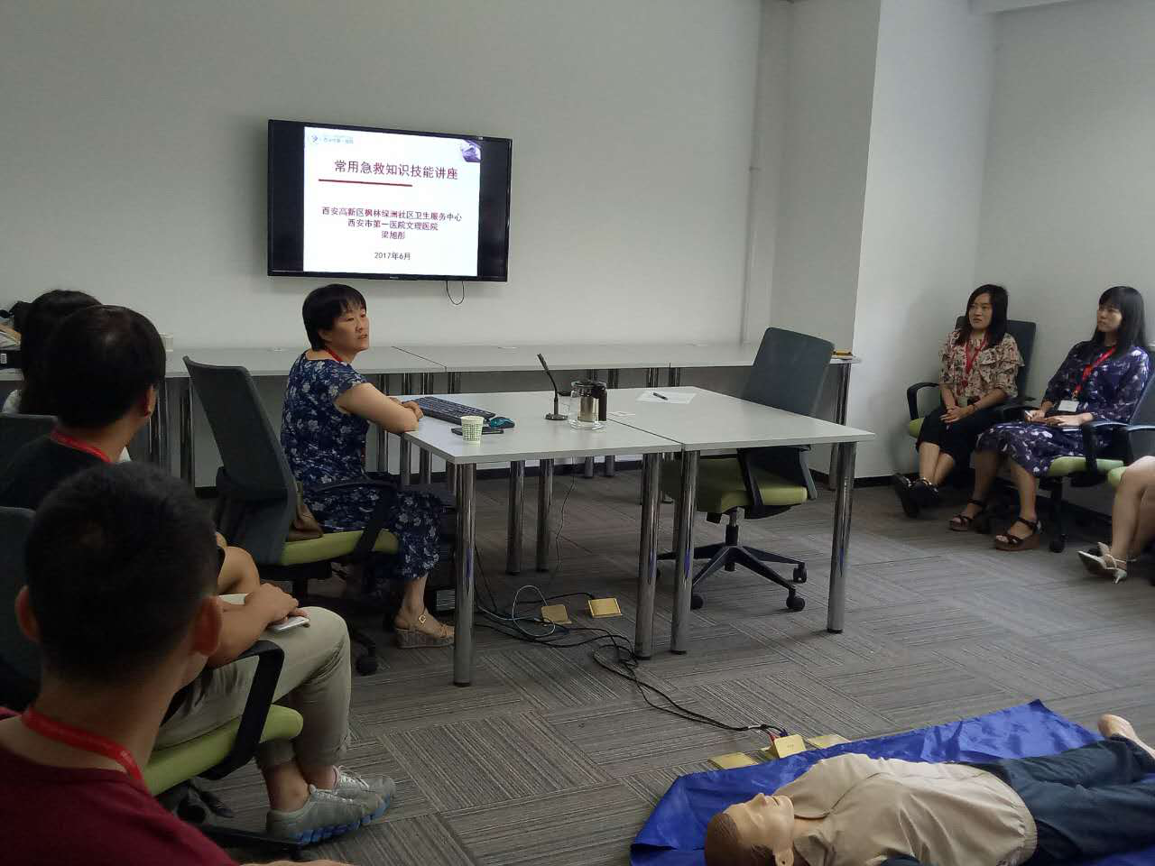 随着社会发展,生活节奏加快和生活水平的提高,心血管疾病突发致死率居首位,自然灾害、交通事故等伤害严重威胁人们的生命。为了使更多的人掌握急救知识和技能,2017年6月28日下午,应富士通(西安)系统工程有限公司邀请,文理医院暨枫林绿洲社区卫生中心医务人员为富士通全体员工进行了常用急救知识技能培训。
