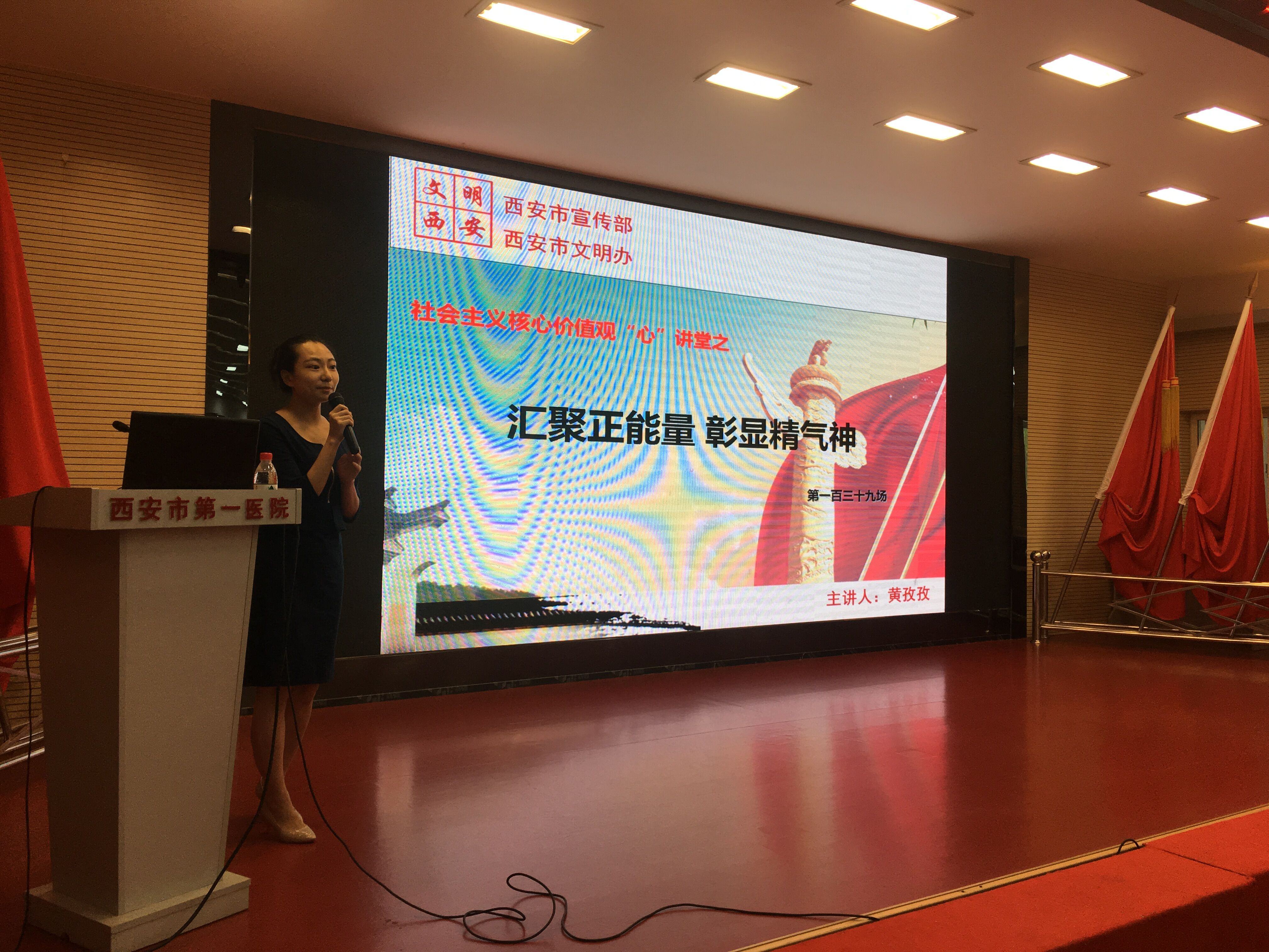 职工讲解社会主义核心价值观的深层精神内涵,及如何在个人行为、家庭教育、日常工作中,将自尊自信乐观向上、心理健康意识与现代文明理念融入现实,自觉树立起运用实际行动来践行社会主义核心价值观并实现中华民族伟大复兴中国梦的信念决心。会场气氛活跃,听众纷纷表示自己受到了心的洗礼,获益匪浅。