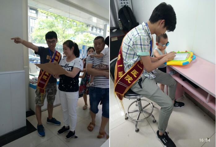 本次招募的7名志愿者均为来自西安医学院眼视光学系的学生,他们通过对患者进行热忱的志愿服务来认识眼科临床工作。在院期间他们从事的服务项目包括在医院视光学部门诊大厅参与导医、指导挂号、打印检查结果、维持诊室秩序等工作,另外部分志愿者在斜弱视训练室给等待训练小朋友们讲故事、画画、做手工,缓解儿童患者等待训练的焦躁情绪。
