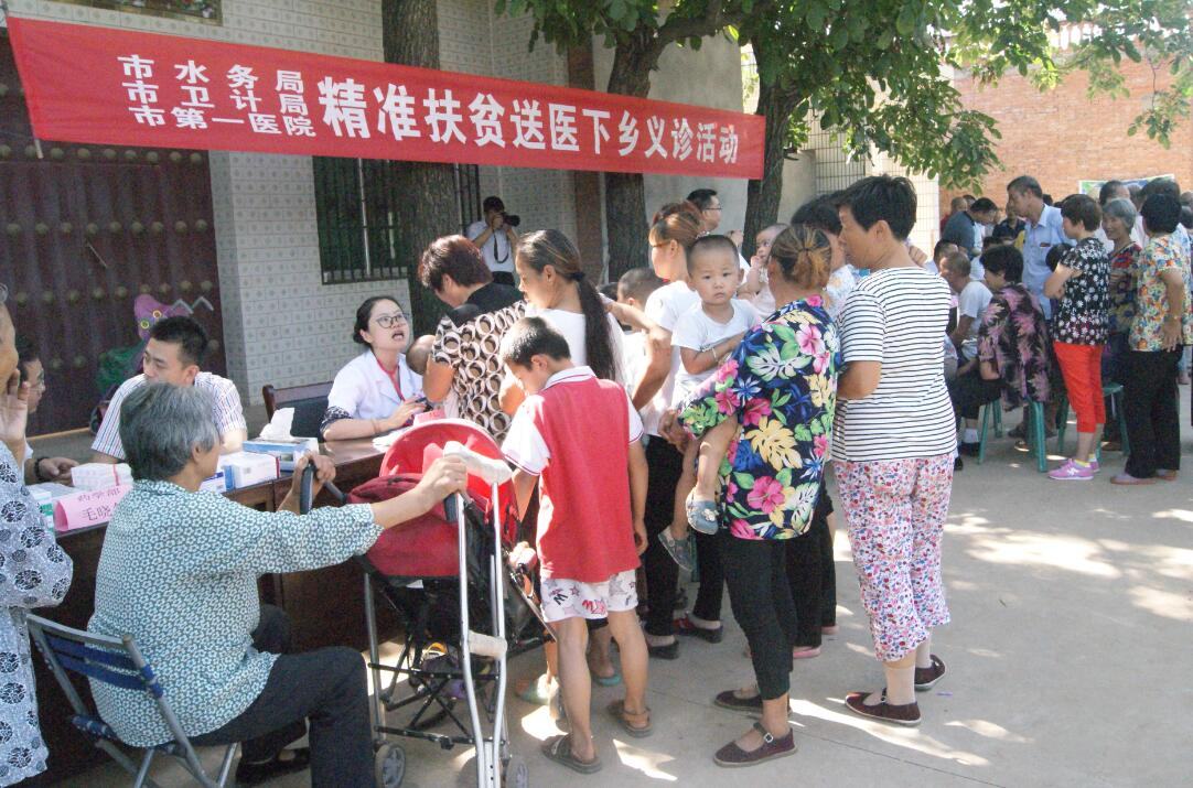 13个临床科室的18名医务人员组成的医疗队,前往周至县竹峪镇金盆村,开展“精准扶贫送医下乡大型义诊活动”。市卫计委医政处主任科员董泽一同前往。