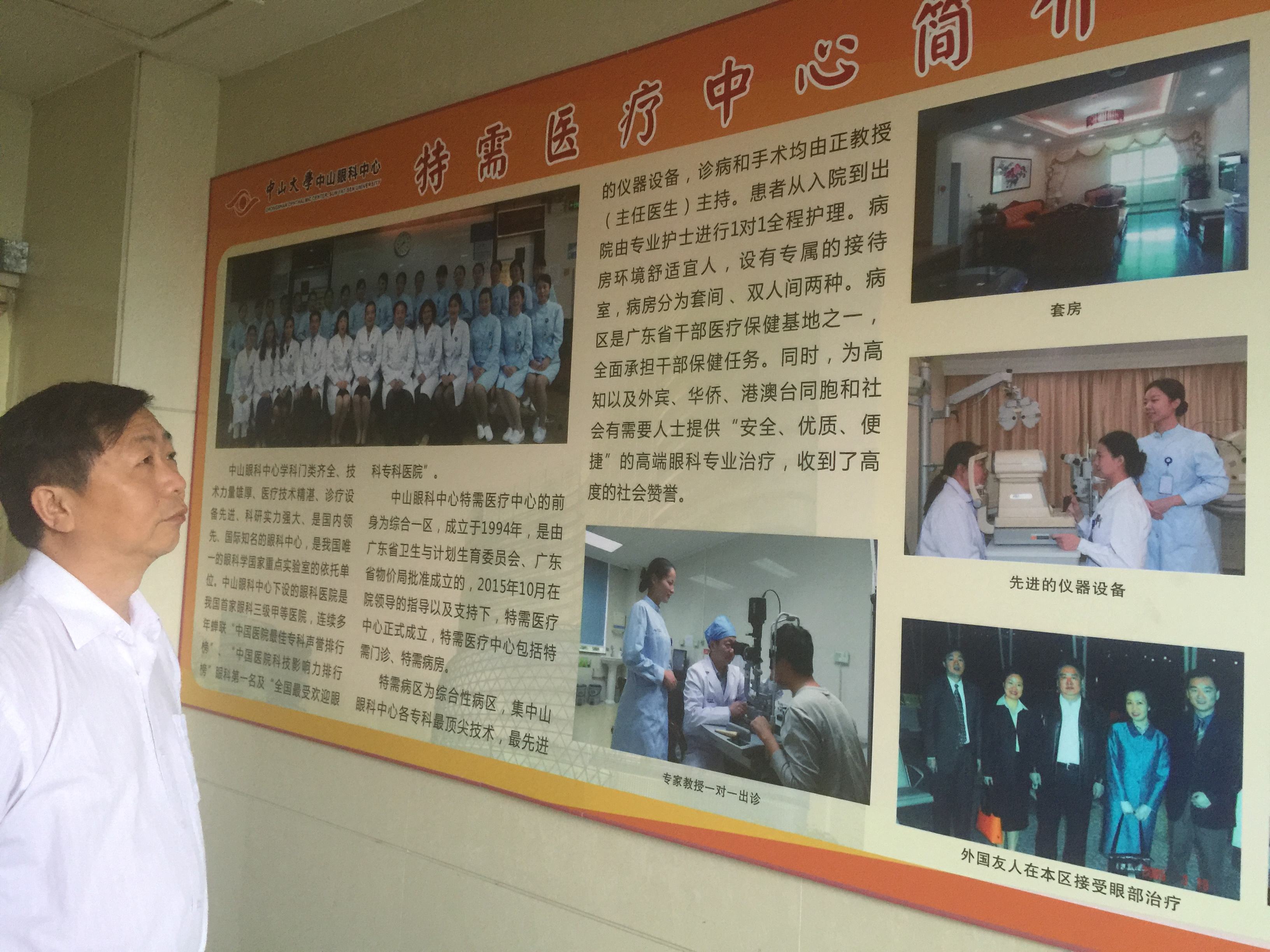 会议结束后,袁进教授陪同眼科医院邵景院长一行实地参观中山眼科中心特需医疗中心、日间手术病区、眼科学国家重点实验室、中山眼科中心眼库、重症疑难眼病会诊转诊中心、远程会诊中心、特需门诊和眼科体检中心,以及中山眼科中心珠江新城新院区。