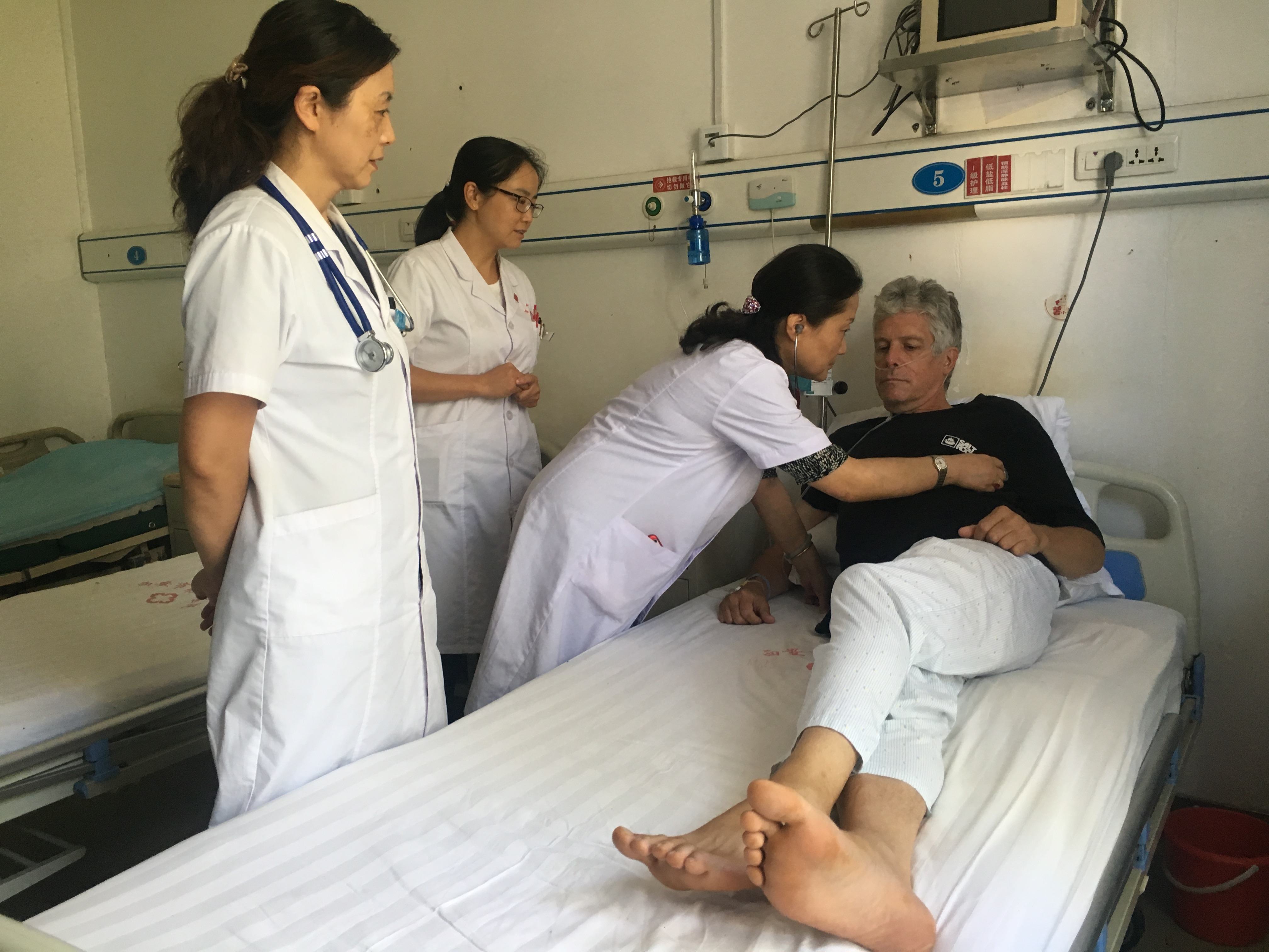 急诊科来了一位突发胸痛的特殊患者—57岁的英国男性游客ROY,他和夫人都不懂中文,也没有导游。急诊科值班医生杨银娟与其进行简单的英语交流后考虑为急性冠脉综合征,心电图显示急性心肌缺血,急请心内二线吕建庄副主任医师会诊给予相应治疗后患者症状减轻,收治入院。