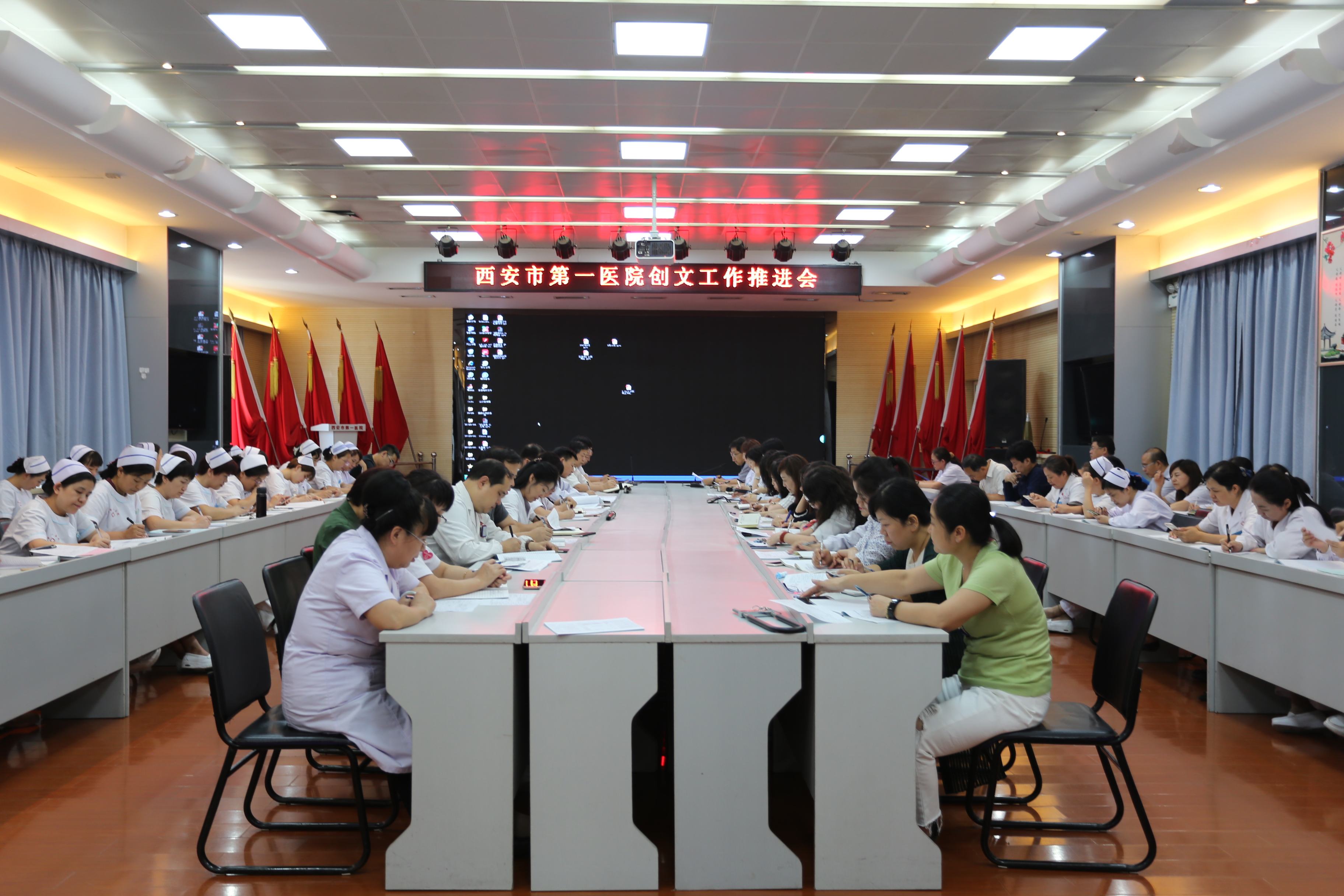 关于做好西安市迎接全国文明城市复审测评实地考察相关工作,院领导班子成员及全院中层干部参加会议。