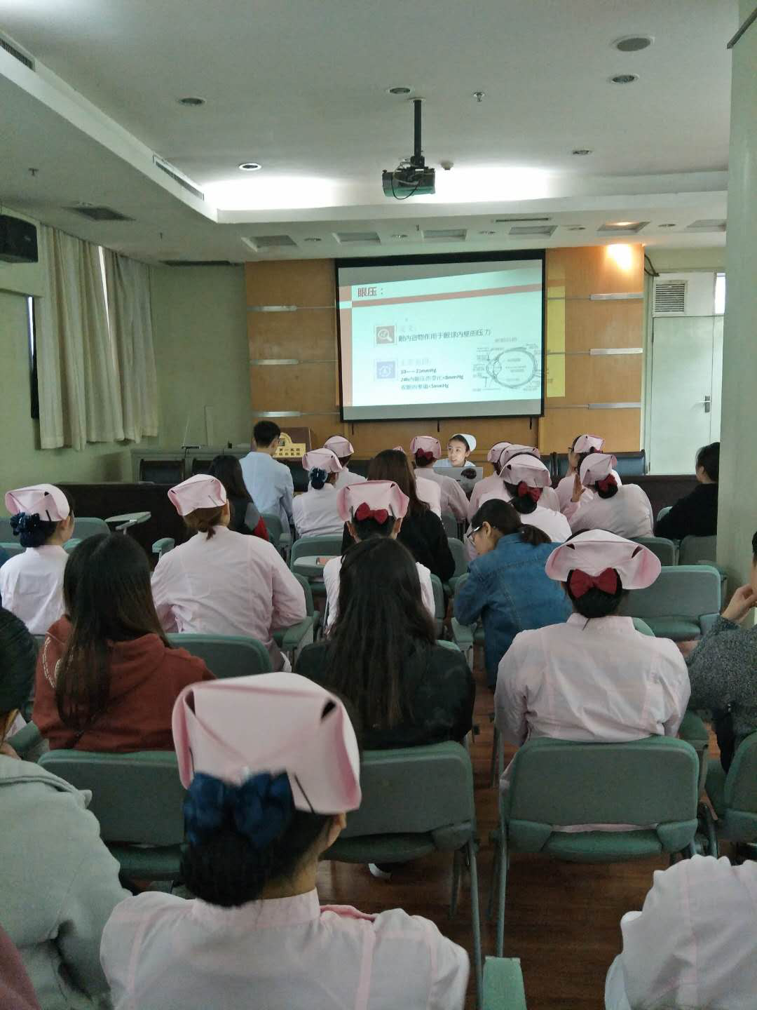 护理实习生专科理论知识和实践操作技能,2017年11月1日15时,眼三病区全体护理人员及护理实习生进行了一场特别的业务学习,此次业务学习科室护理人员与护理实习生进行角色转换,以往都是带教老师向实习生讲课,而这次由实习生自己制作PPT为大家授课。首先,实习生葛沛娟、白雪洁分别为大家讲述了“白内障疾病护理常规”和“青光眼疾病护理常规”,从疾病的定义、分类、临床表现、治疗及术前术后护理相关宣教等方面进行了详细的讲解。讲解结束后,护理人员及其他实习生进行了讨论。其次,由眼三病区带教老师周海妮对PPT相关的内容进行了补充,就青光眼的发病机制及手术原理进行了全面的讲解,加深了大家对青光眼手术原理的印象。最后,眼三病区护士长王霞对此次业务学习进行了总结,通过角色互换、形式多样的教学模式不但能拓展实习生的知识面,还能提高语言表达能力和和综合素质,为今后的临床工作打下坚实的基础。