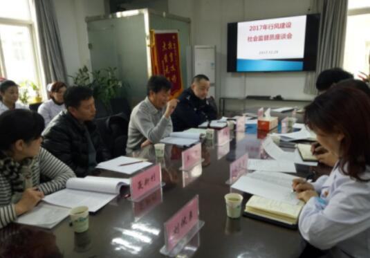 2017年行风建设社会监督员座谈会。参加本次座谈会的有院领导班子、部分中层干部及医院聘请的行风建设社 会监督员,座谈会由副院长宋国忠主持。