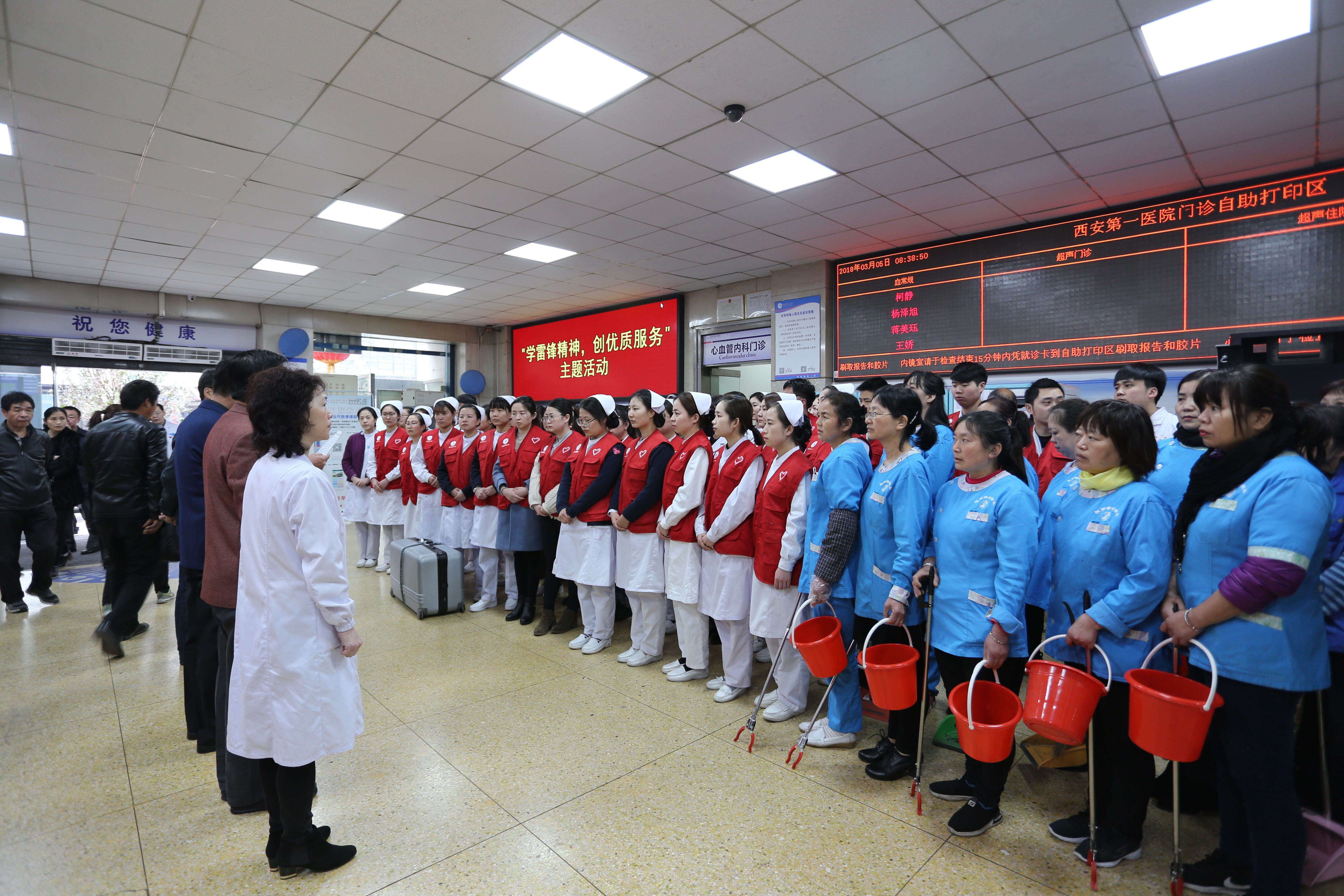 团委、爱卫办、卫防科、急救中心、门诊办共同组织“学雷锋精神,创优质服务”系列主题活动。?