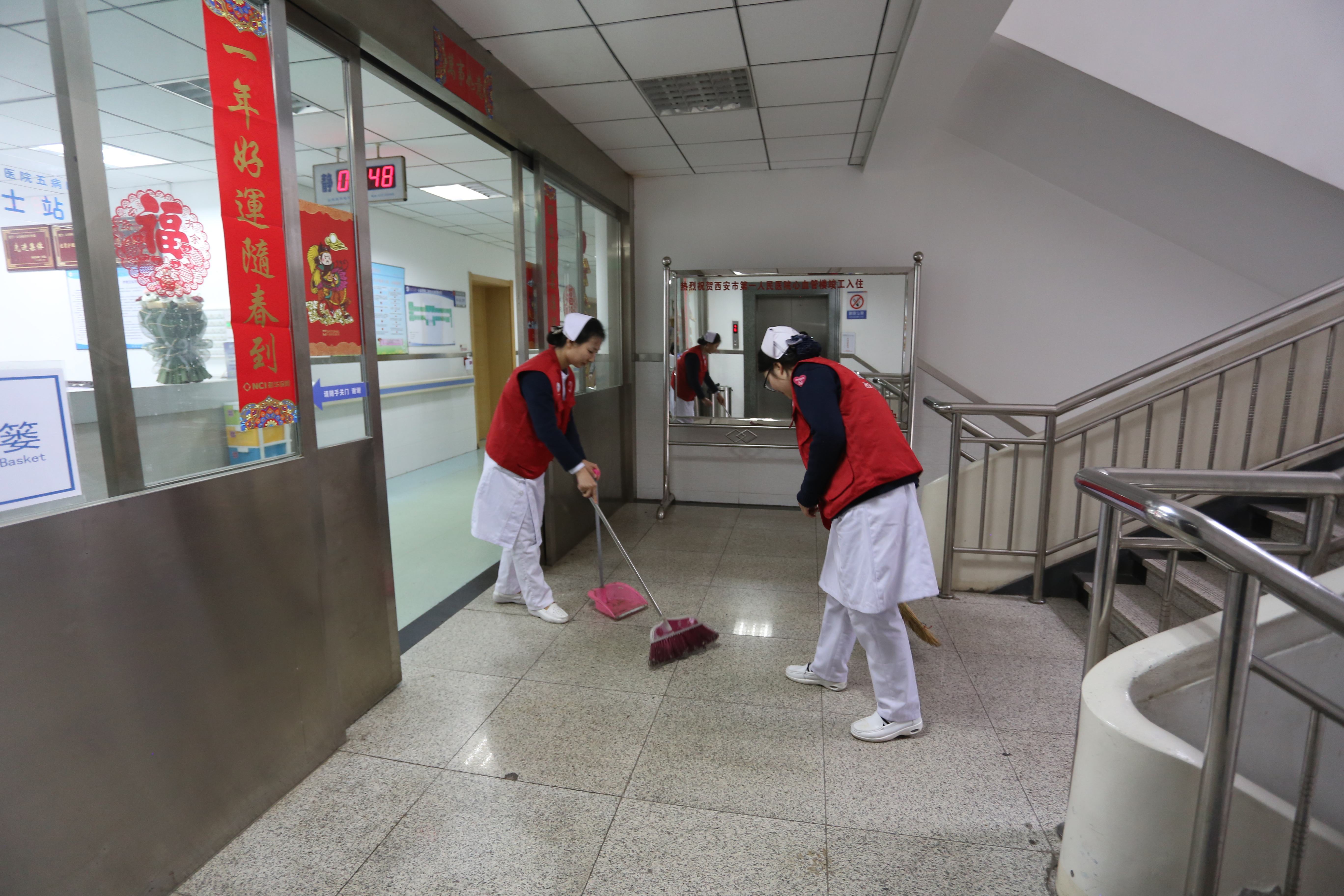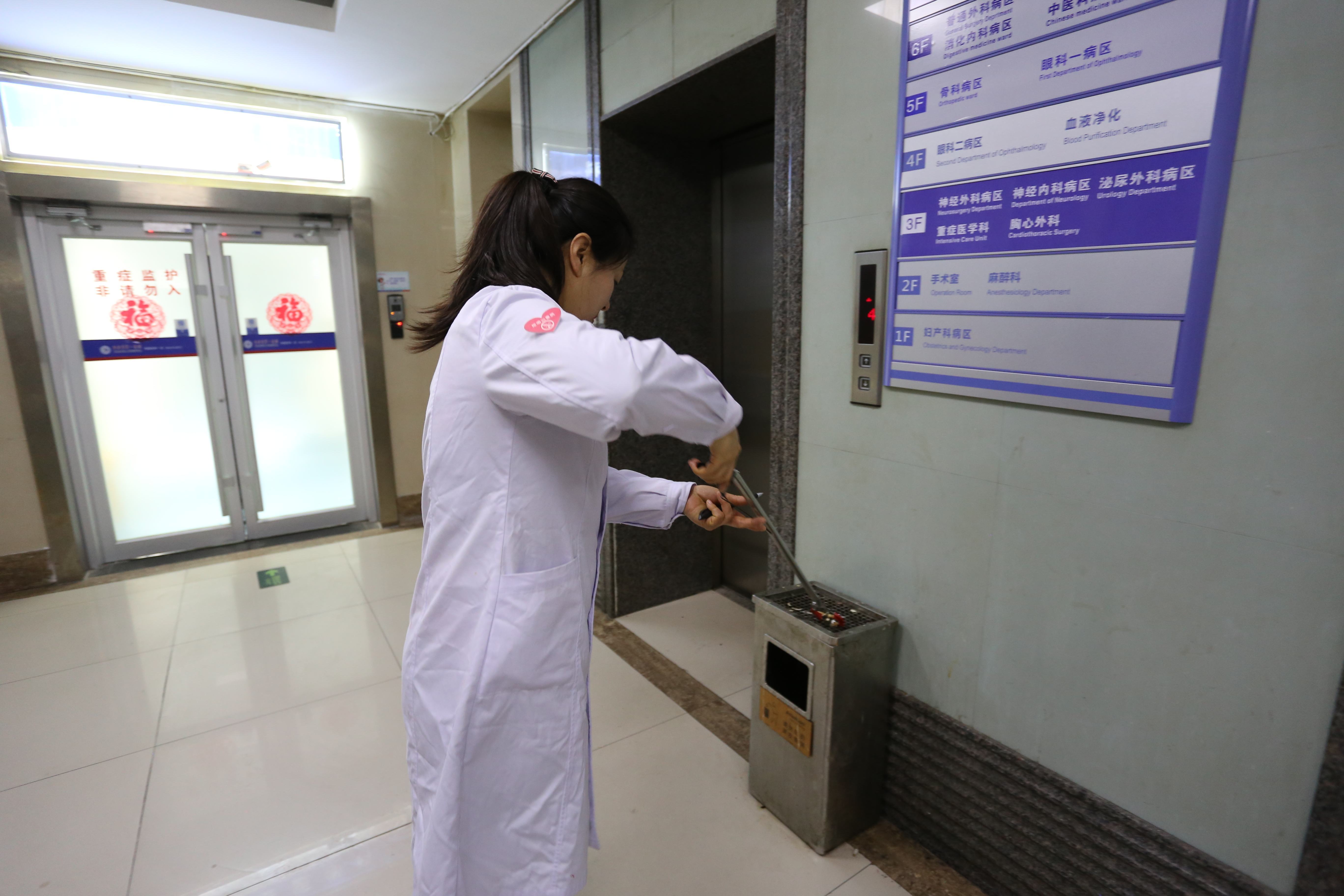 全院各科室医务、行政后勤人员组成的志愿者们分为多个小组,在院内进行志愿导医,为患者就诊疏导分流,指导患者如何便捷使用智能挂号服务,缩短候诊时间;在院内捡拾清扫墙角、花园、楼梯等死角的烟头,并对吸烟人员进行劝阻;清理花坛草丛的垃圾,改善维护院内环境卫生。