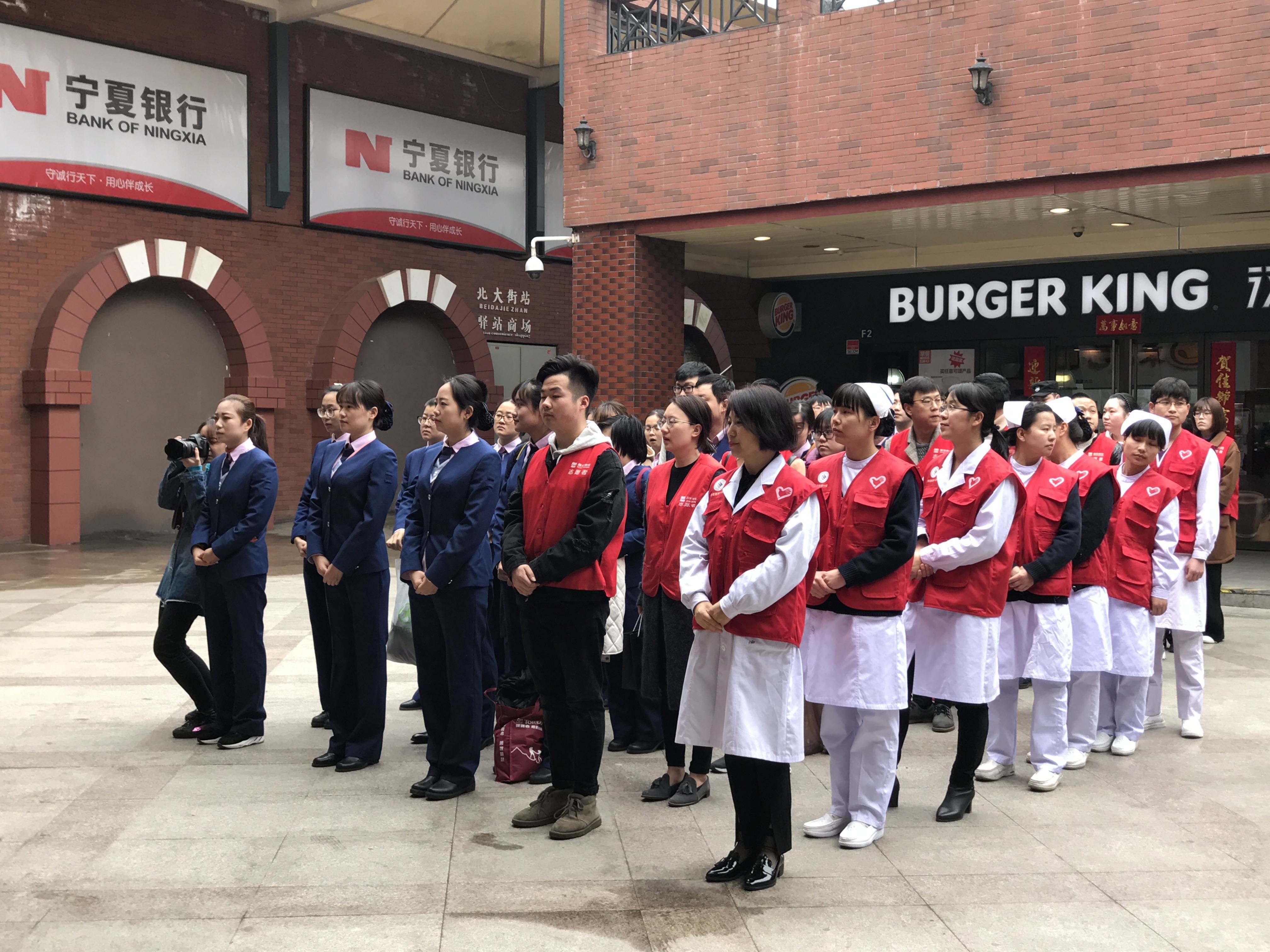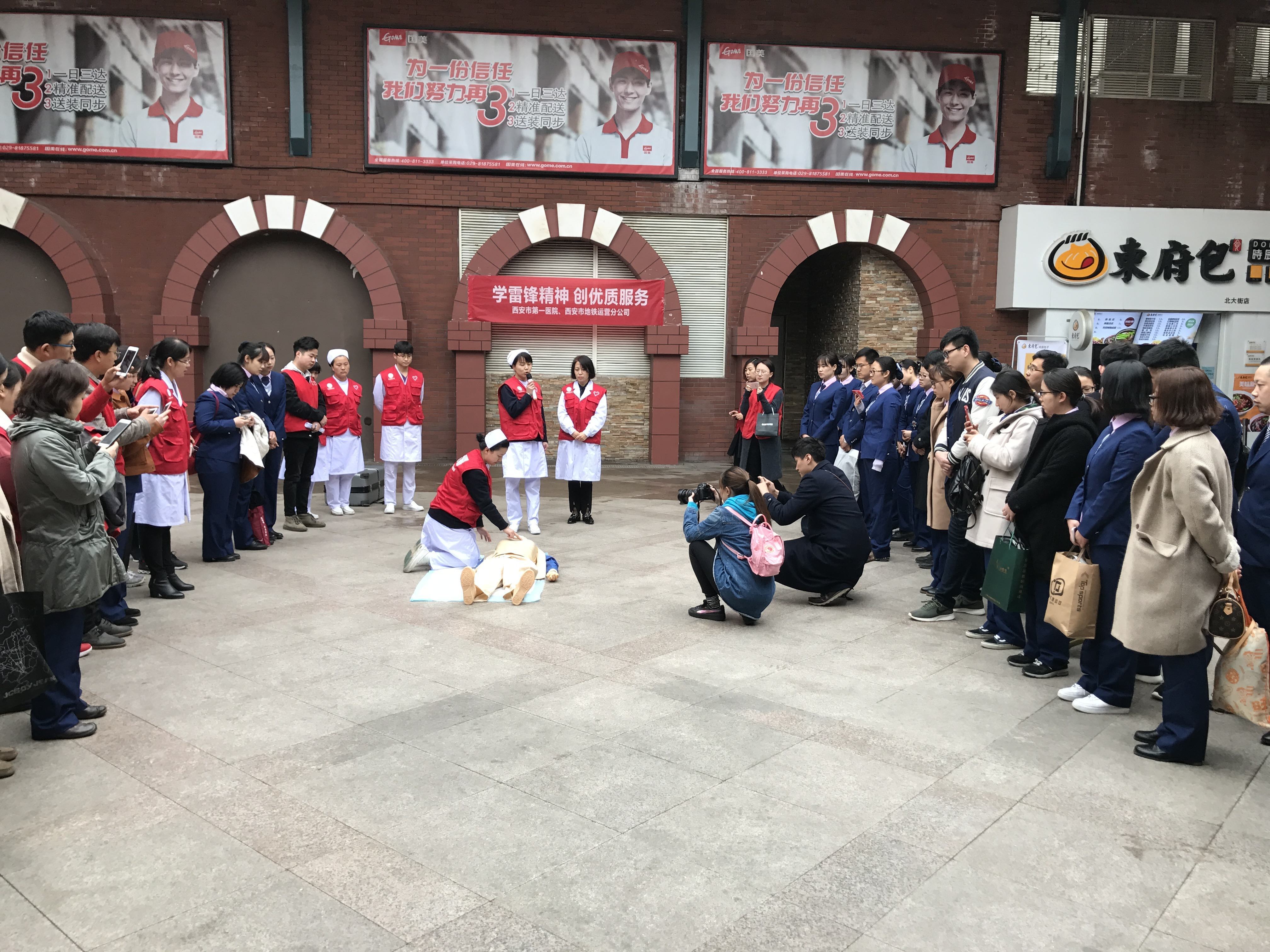 与此同时,急救中心医务志愿者前往地铁北大街站,与西安地铁运营分公司志愿者联合开展急救医疗志愿服务宣传活动。活动上,西安地铁运营分公司客运部党总支书记王菲为活动致词,急救中心副主任郑均梅带领医护团队为地铁站职工、志愿者普及应急救助知识,并示范心肺复苏的正确方法,第一医院党委书记邢海柱进行总结讲话。参加培训的人员纷纷表示能够直接从一线医务专家这里学到正确的急救知识,让人获益匪浅。