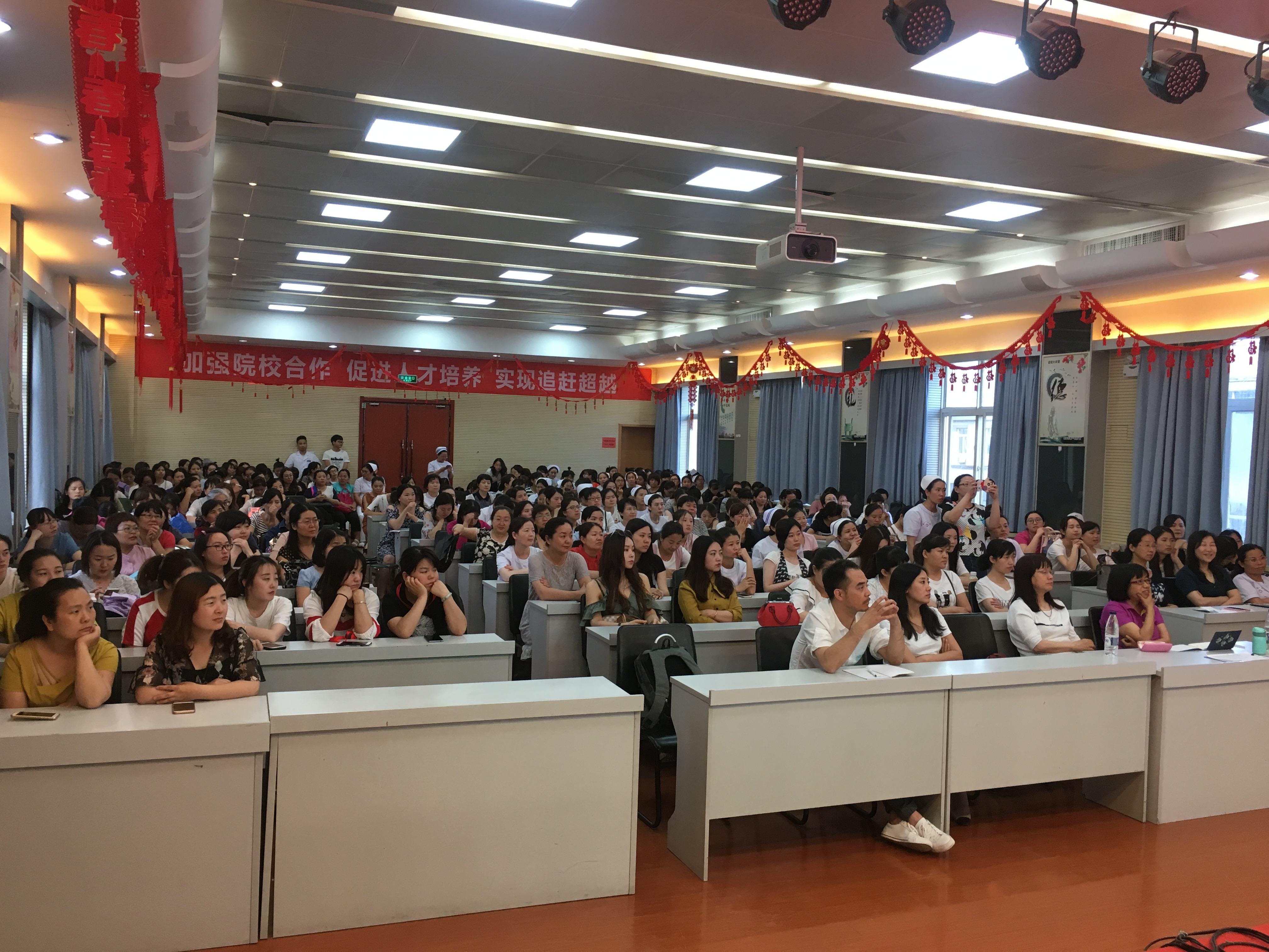 吴洁老师、护理部及政工科积极促成下,6月5日下午特别邀请国内著名心灵成长导师兼<<幸福女人>>工作坊设计者---温耀婕女士进行主题为“读懂生命的能量,做最好的自己”的心理讲座,全院二百余名护理人员利用班后时间参加此次讲座。