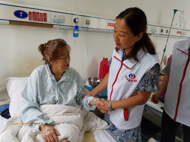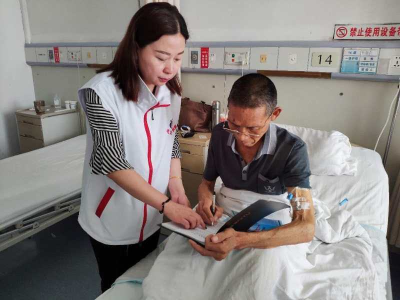 紧接着我们又来到了交大一附院消化科一病区,志愿者是一名65岁农村老人李先生。李先生的表情特别淡漠,因为他正在经受疾病的折磨。他告诉我们,他的病情很复杂,多年来一直在医院治疗,他知道自己时间不多了,在报纸上看到了红十字会的报道,所以就给我们打了电话,决定把自己的遗体、角膜捐献给社会。他还说,等待角膜的患者比较多,他愿意传递爱心和光明。并且当场填写了遗体和角膜捐献书。
