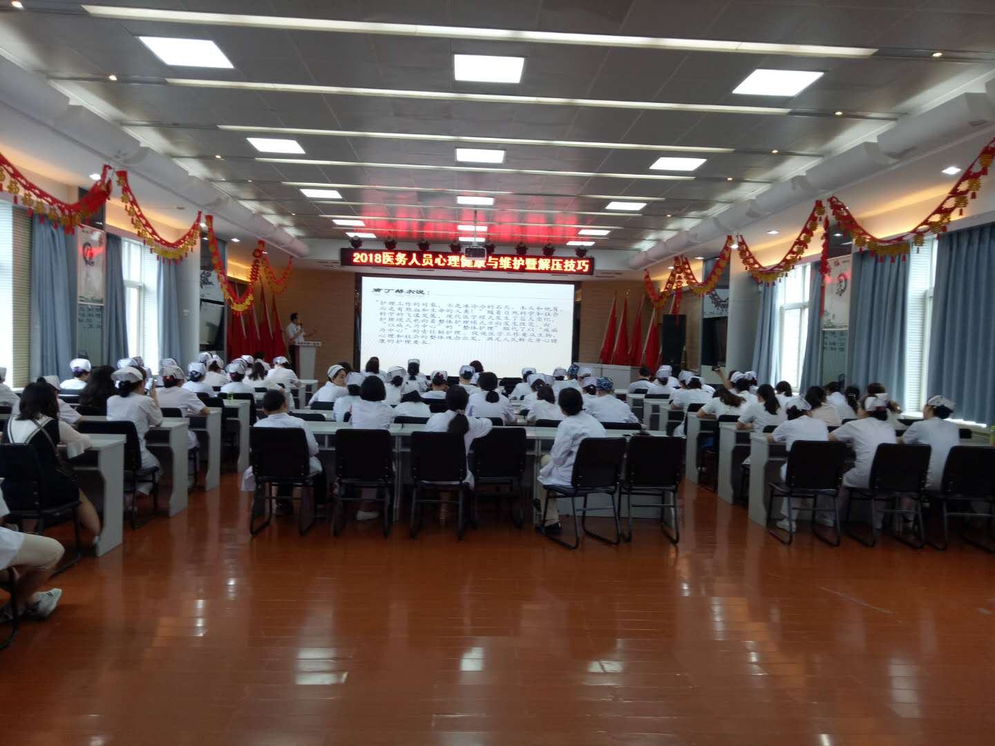 领导班子对医院全体员工的心理健康非常重视,7月11日,由医务科、护理部组织全院医务人员300余人,于心血管五楼会议室召开了“2018医务人员心理及心理健康维护暨解压技巧”培训会。