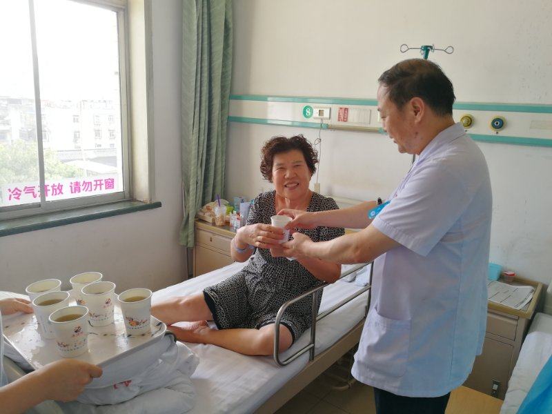 眼科六楼白内障病区却呈现出热火朝天的干劲。7月16日是眼科白内障病区最忙的日子,当日病区入院31人,出院10人,转出1人,共计在院36人,其中2岁——10岁小孩5人,其余多数为70余岁的老年人。住院患者多,中央空调又突然出现故障,病区的室温急剧上升。科室成员在主任和护士长的带动下,将家里的电扇及降温工具带来供患者使用。最终保障了每个病房提供一台电扇供患者降温。与此同时科室从超市购买了绿豆、白糖并熬制绿豆汤,由马挺主任,龙潭副主任,白茹护士长带队,分别免费发送到每一位患者手中。在献爱心之后,大家来不及休息,匆匆的回到了自己的工作岗位上,因为还有许多病人在等着他们治疗、手术、护理。