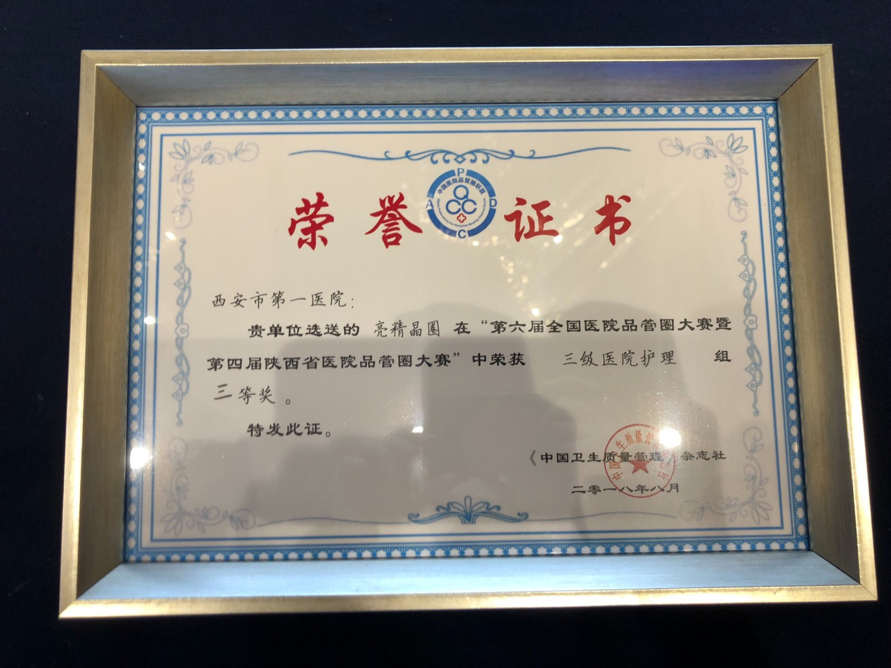 眼五病区“亮精晶”圈组的《提高科室日间手术患者满意度》在强手云集的大赛中脱颖而出成功晋级决赛并获得陕西省“三级医院护理组”QCC项目三等奖。市级医院仅两家三级医院获此殊荣。