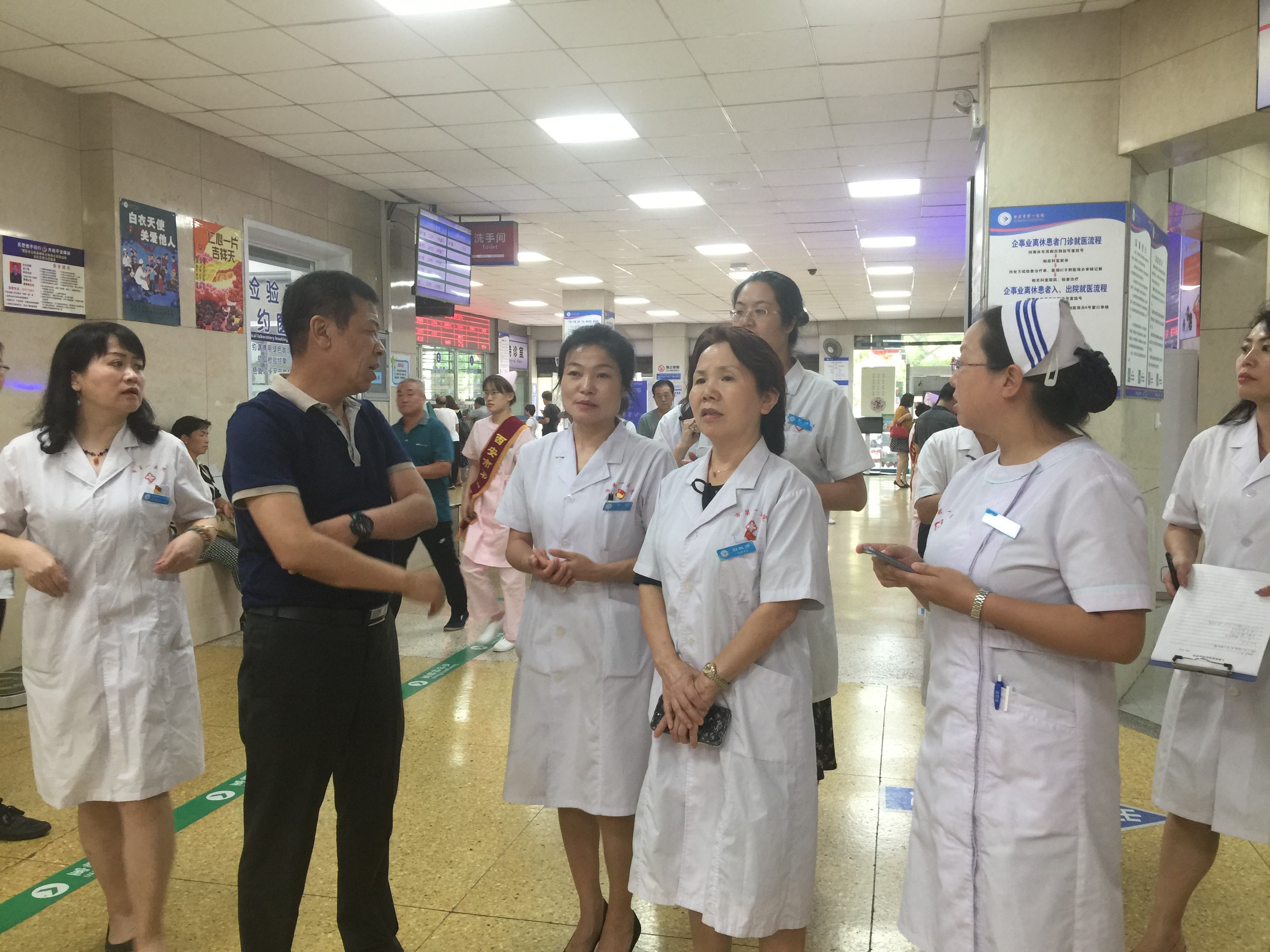 2018年9月4日下午2时,院党委书记邢海柱、纪委书记白敏芳带领院干部作风问题排查整改督查小组成员,对全院窗口部门及门诊各科室进行现场督查。重点督查门诊窗口服务态度、工作状态、仪容仪表、便民措施、投诉渠道公示、诊疗环境等内容,并对上次督查反馈问题整改情况进行复核。
