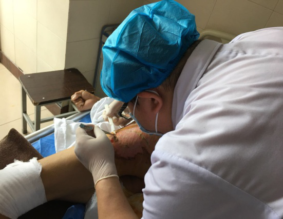 在多科室的积极配合及协作下,骨科主任高战鳌带领骨科团队成员及时对患者的左髋部、左臀部、左膝关节等多处外伤进行清理及修复,由于患者系严重外伤后被水泥腐蚀污染伤口,且受伤后未第一时间清创处理,一直旷置长达16小时。这次清创极其困难,啄木鸟
