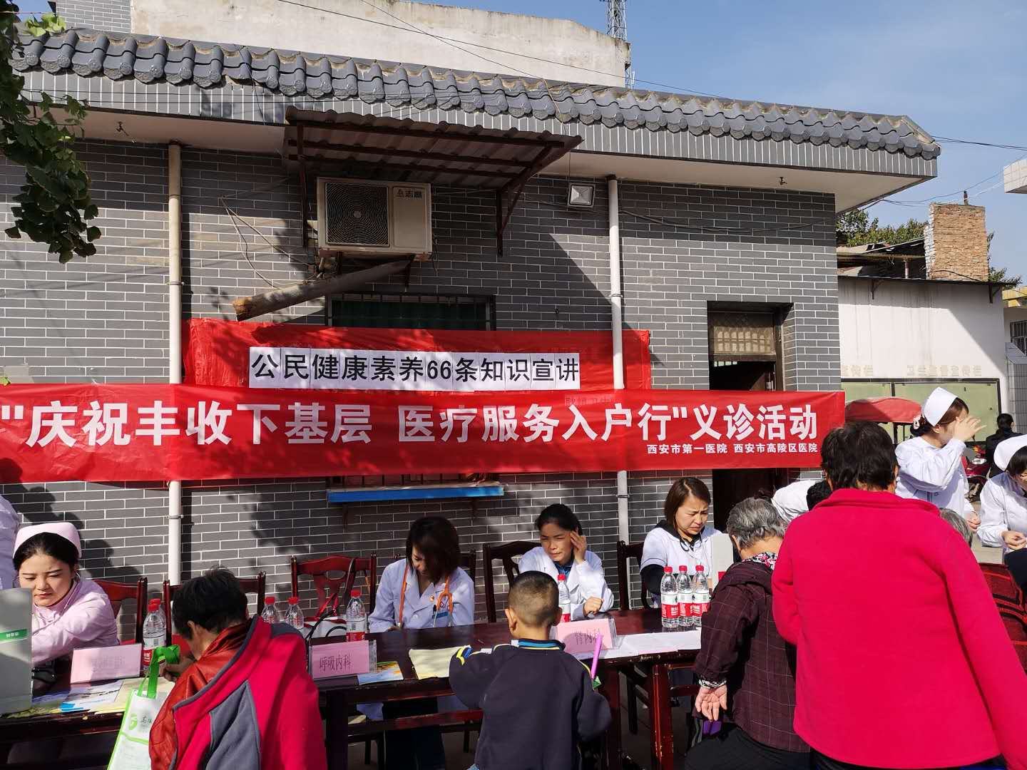 协同高陵区医院,分别安排四支医疗队,共计医护人员20余人携带相关诊疗仪器及捐赠药品,分别前往高陵区湾子镇和耿镇开展义诊活动,医疗队员仔细为当地居民进行查体、量血压、测血糖,并向他们普及了通俗易懂的健康知识。