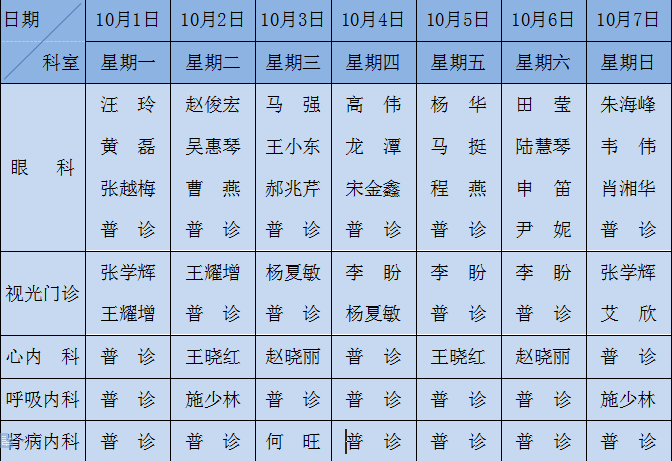 为方便患者国庆小长假就医,现将医院门诊安排告知如下: