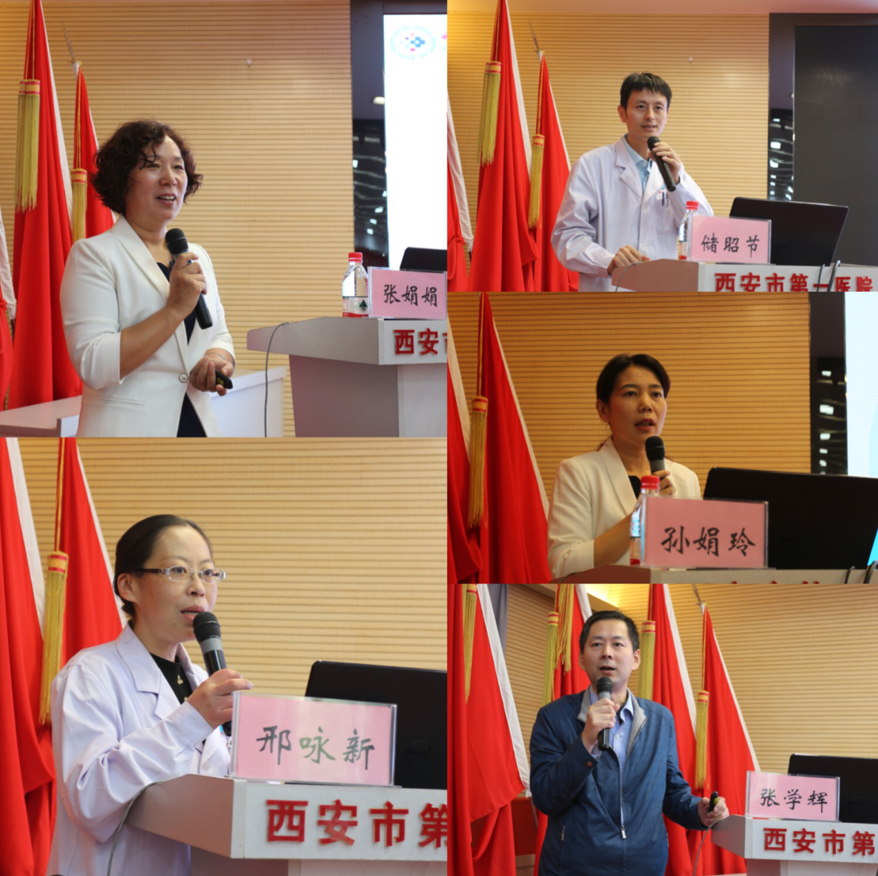 眼科博士,邢咏新主任以《儿童眼保健指南》为主题进行了精彩讲座,她深入浅出的讲述了我国目前近视人群剧增,面临的问题以及治疗要点。眼科视光门诊张学辉主任《角膜塑形镜护理规范》为主题做了精彩授课;眼科门诊副主任储昭节博士以《高度近视的防控共识解读》为主题做了演讲,他用经典案例贯穿始终,用通俗易懂的语言将防治要点娓娓道来。西安护理学会眼科专业委员会主委张娟娟以《如何做好眼科护理学科建设》为主题进行了讲座,详细分析了眼科护理学科建设中遇到的各类问题及采取的应对措施。西安市第四医院日间手术中心护士长孙娟玲护士长以《“一站式护理服务模式”应用于眼科日间手术患者的效果评价》为主题,做了极具感染力的演讲。她分享的护理服务的技巧,让听众受益匪浅。她言简意赅的指明了当前护理同仁在眼科日间手术中遇到的共性问题,并提出了积极的改进建议。各位专家为广大护理同仁分享了精彩内容,搭建了相互交流学习的平台。