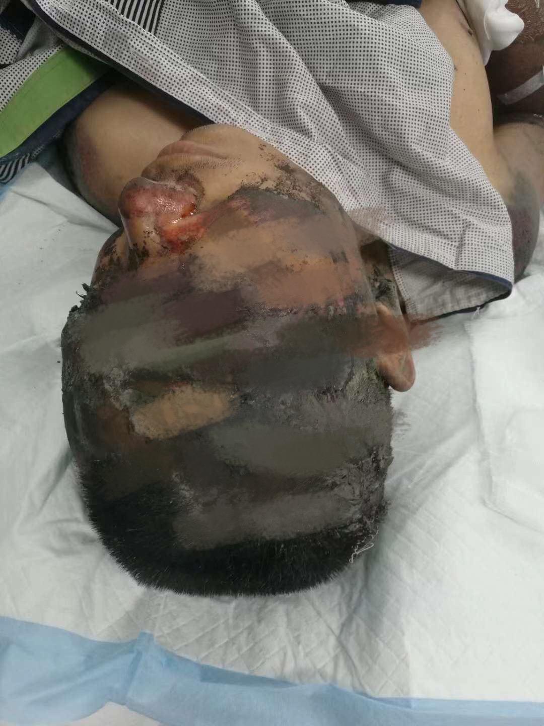当神经外科医生接诊这位患者后发现患者部分头皮已经脱离颅骨,口腔鼻腔内都是水泥,双眼及全身大面积化学烧伤,左腿甚至能看到裸露的骨头上沾满了水泥。为防止患者颅内感染以及双目失明,神经外科立即开通绿色通道,最短时间内完善术前检查,在积极术前准备的同时联系医务科,为患者多科室协助手术做好准备。神经外科、眼科、骨外科、泌尿外科、耳鼻喉科、呼吸内科、手术室及麻醉科近20位医生历时10小时,成功的为患者完成了手术。术后患者转入ICU进一步治疗。