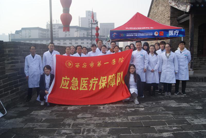 王克平副院长带领医疗保障队员们准时抵达西城墙,自行搬运携带的担架、氧气袋、心电除颤监护仪等急救设备,大家不畏严寒坚守岗位,工作认真负责,直至比赛结束,啄木鸟