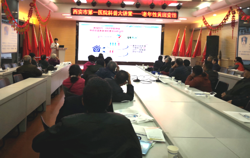 在心血管五楼成功举办了湿性老年黄斑变性科普大讲堂。来参加活动的患者约40余名,虽然西安迎来了今冬首次大降温,但是活动现场依然热烈温馨。