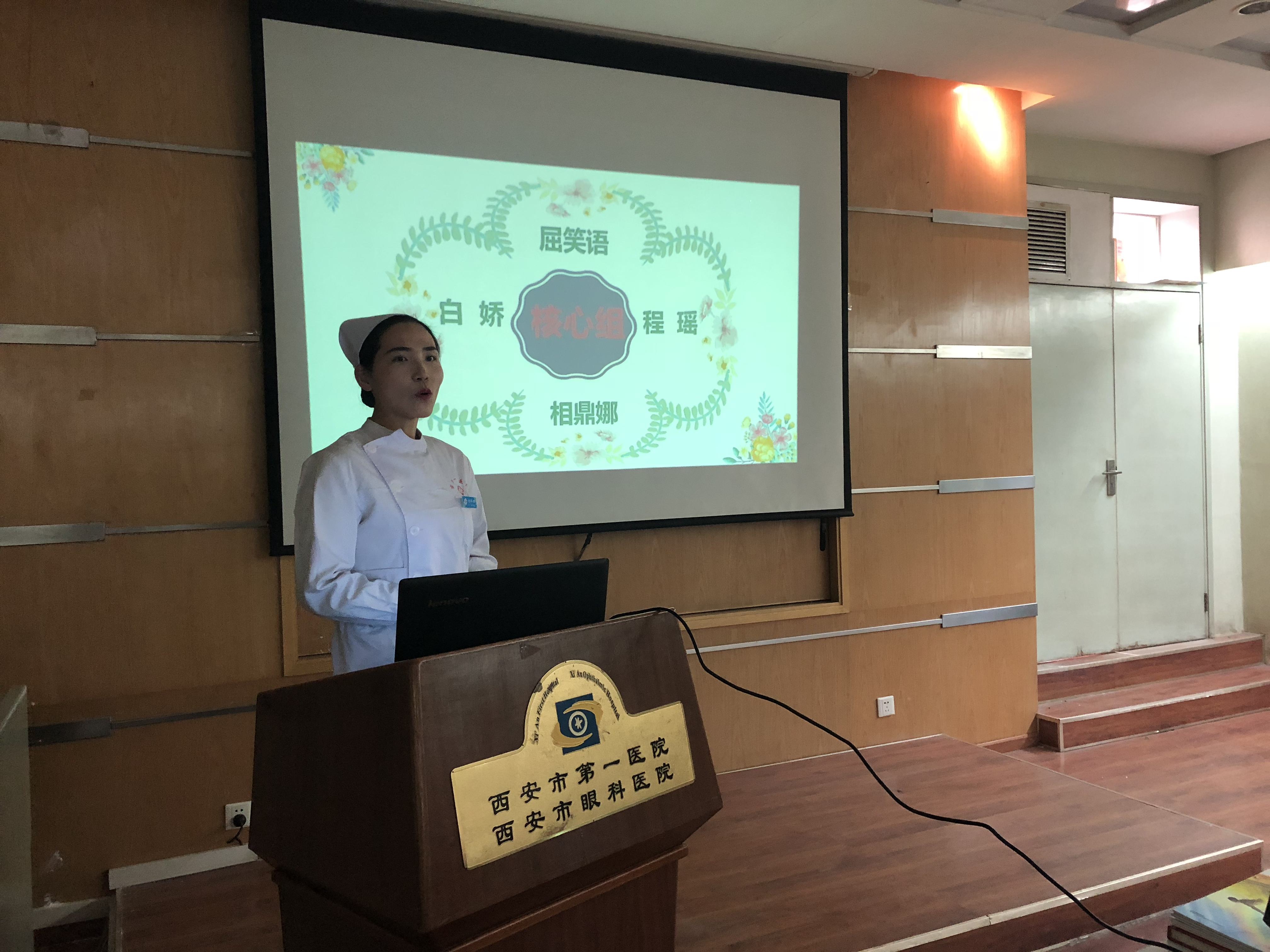 2018年12月10日下午,由眼科手术室举行的以“携安全、谋创新、展未来”为主题的年终总结汇报赛在眼科九楼会议室顺利召开。此次会议有幸邀请到了第一医院邵景副院长,王彤眼科副院长,控感科主任雷晓航,护理部副主任张蕾作为评委。会议由眼科手术室护士长朱薇主持。通过抽签依次由四个护理质控组长以现场比赛的形式汇报,本次活动的创新点是院级评委通过纸质打分,本科室人员规避原则后互评分,通过“京颐512”系统现场打分,为啄木鸟