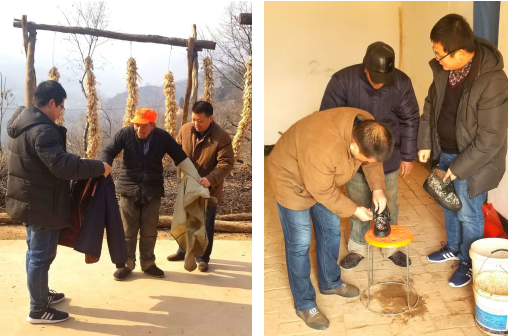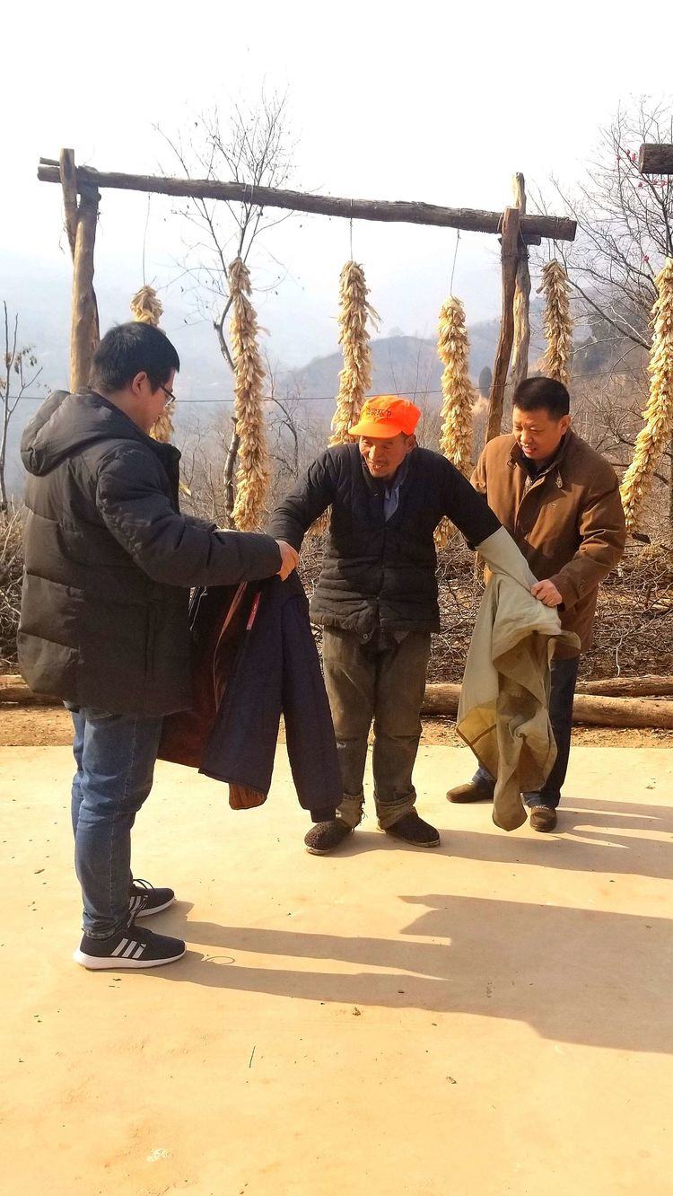 在村子的塬坡上,远远的就看到了王买利正在自家院前喂鸡。王买利看到扶贫干部,高兴地迎了上来。边走边聊,似亲人相见。扶贫干部帮王买利换下单薄的旧衣,一件一件换上新装。王买利露出了憨厚的笑容,连声说:“我正想思着再寻个夹袄加上呢,今儿个你们就带了一身新的。扶贫干部真好!感谢西安市卫计委和啄木鸟