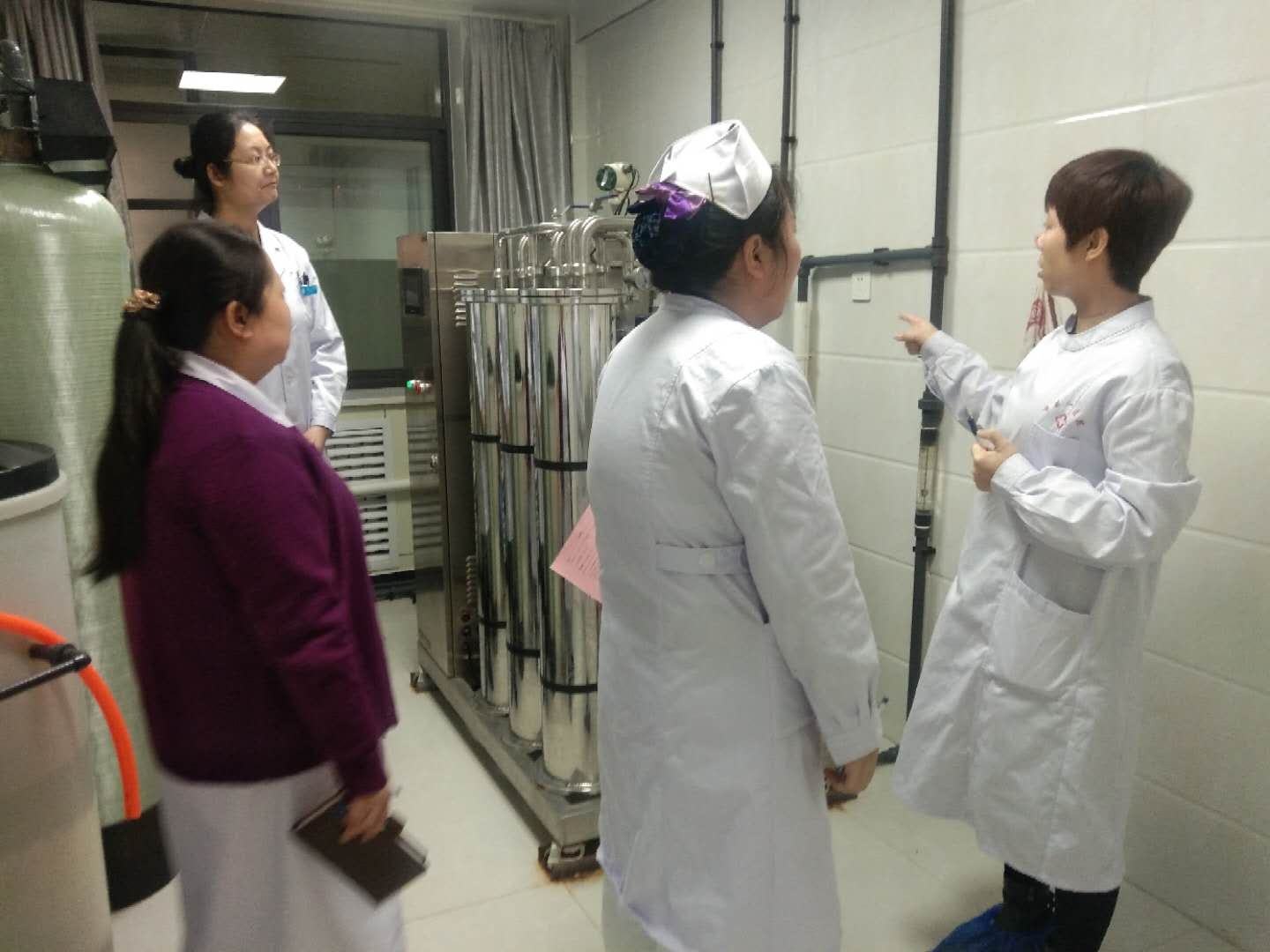 开展2018年血液净化专项督导检查工作,医务科副科长职瑾、控感科科长雷晓航、控感科副科长闫艳、护理部副主任张蕾、肾内科主任刘安平、血透室主任何旺及血透室医务人员迎接检查。
