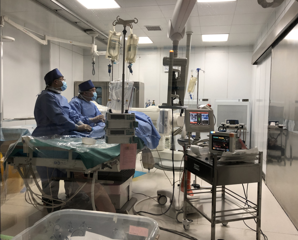 17:30我科住院部史亚玲副主任医师、蔺雪梅副主任医师及岳龙华主治医师接诊后,立刻启动尿激酶静脉溶栓治疗,溶栓过程顺利但症状无明显改善。征得患者与家人同意后,我们采用桥接治疗(全脑血管造影术+眼动脉溶栓术),我科介入团队(刘国正副主任医师、逯青丽主治医师及张瑜瑜护师)迅速返回工作岗位,立即开展介入救治工作。19:50进入介入室,穿刺、脑血管造影、超选左侧眼动脉、微导管内尿激酶溶栓等工作一气呵成。手术过程顺利,21:50操作完毕,患者觉左眼可见介入室天花板灯光的基本轮廓,50cm处可辨别指动。陪同病人返回病房,给随即赶来的家属嘱咐完注意事项后时间已进入凌晨,他们拖着疲惫的身体回到办公室,饭菜虽早已没有温度,但想到患者和家属无限感激的言语,他们心里却倍感温暖。