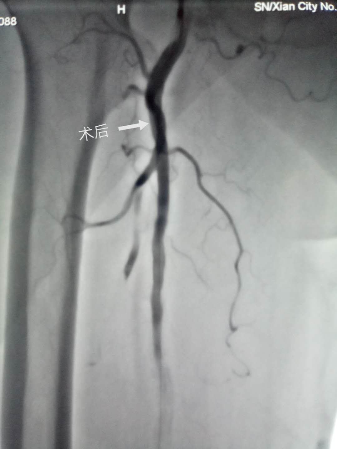 下肢动脉闭塞症是一种老年常见的疾病,是因为下肢动脉狭窄、闭塞,引起腿部供血不足出现腿部疼痛,感觉异常,皮温低,严重的会引起坏疽,而导致病人截肢。随着老龄化社会的到来,对于超高龄的老人,一般基础疾病较多,手术风险大,术中抗凝出血风险大,给介入医师带来更多挑战。我科通过此病例的成功处理,积累了对超高龄出血风险大的病例的治疗经验,为今后更好的开展此类介入治疗积攒了宝贵的经验。