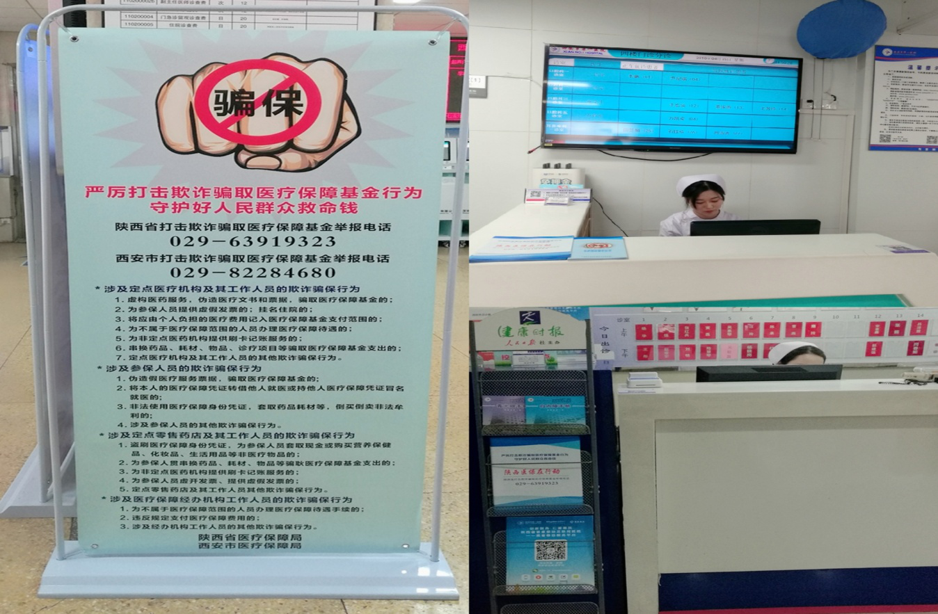 为配合此次活动,医保办积极开展各项宣传活动,在门诊大厅显著位置张贴宣传海报、公示举报电话、导医台及医保窗口放置宣传折页、LED电子屏循环播放宣传字幕,让更多的医护人员和就诊患者了解、重视以遏制欺诈骗保行为.
