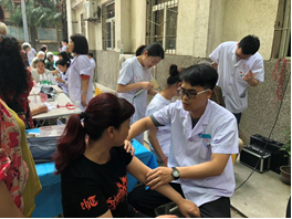 此次义诊活动专家力量雄厚,包括了神经内科、肾内科、心内科、眼科、康复医学科等21位医护人员。医疗服务队带去了血糖仪、血压计、眼压计、视力表、裂隙灯、检眼镜、中频治疗仪等仪器,为早已等候多时的社区居民开展诊治检查、免费送药、解答咨询、常见疾病的健康教育等活动。短短三个小时义诊活动共接待患者300余人次,发放疾病健康教育宣传册260余册、赠送药品价值800元左右。