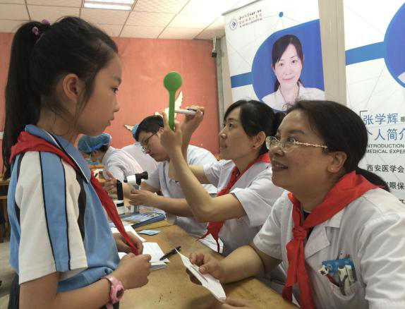 眼科视光学部张学辉主任、眼科美容门诊郅瑛主任、杜蕊医师、尤佩玲护士长带领眼科医护团队前往等驾坡小学开展“关爱农民工子女健康,共同呵护好孩子的眼睛,让他们拥有一个光明的未来”大型义诊公益活动。