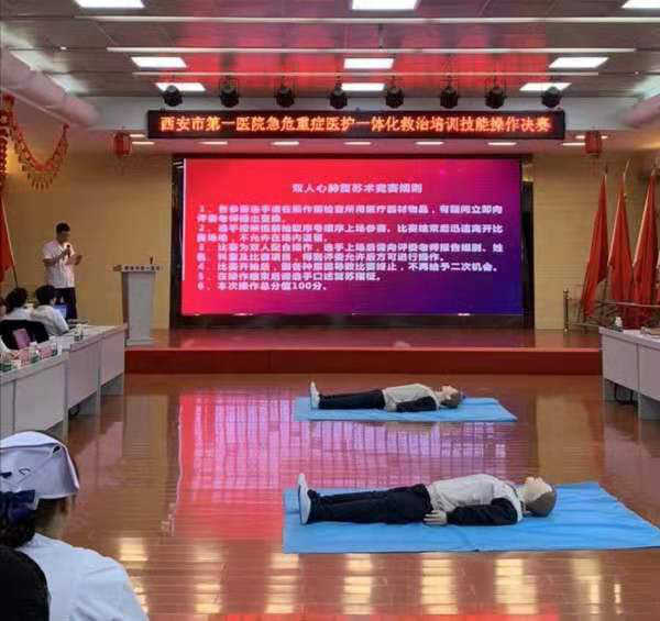 在心血管五楼会议室举办了急危重症医护一体化救治技能操作比赛。院领导班子成员亲临现场为选手们加油鼓励,各临床医技科室代表100余人观摩了比赛。