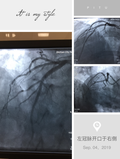 面对首例右位心冠脉造影手术,为保障手术顺利、安全进行,我科赵朝主任召集心血管病医院程曼丽院长等医务团队开展术前讨论,就手术中可能遇到的问题制定解决方案,1如果常规的冠脉造影导管不能顺利完成,那么需要准备特殊类型的造影导管,2若病情需要支架置入治疗,可能需要准备特殊耗材,如Amplatz Right1.0、Amplatz Left1.0、XB Right 1.0、XB Right 1.0、Extra Rackup Right1.0等;充分的准备后,于2019-09-04由心内三赵朝主任,陆艳副主任医师带领团队行右位心冠脉造影术,术中通过JR4.0造影导管在左冠状窦内找到右冠状动脉开口,造影显示血管光滑无狭窄。以JL4.0造影导管在右冠窦内找到左冠状动脉开口,造影显示血管光滑无狭窄。明确排除了患者冠心病诊断,治疗做出相应调整,考虑症状可能与冠脉痉挛等功能性改变引起,积极加强改善痉挛、改善心肌代谢、改善症状治疗。排除冠心病并给予适当的心理疏导后,患者症状逐渐减轻出院。我科在充分的准备工作后,顺利完成了首例右位心的冠脉造影术,积累了宝贵的手术经验,保障了患者生命安全。