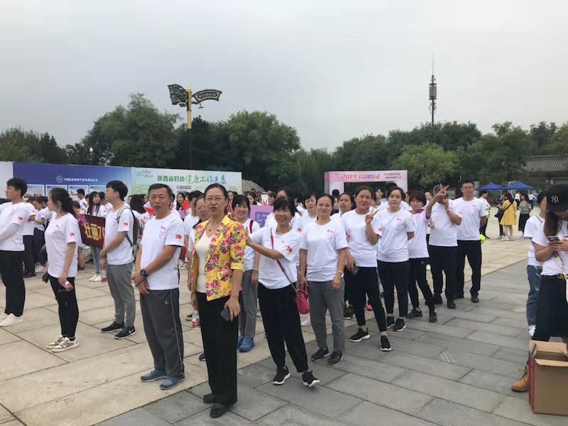 王克平副院长、邵景副院长带队一行25人,身着统一服,以昂扬的精神状态装参加了由陕西省承办的“出生缺陷早预防,健康中国我行动”为主题的宣传活动和曲江池健步走活。