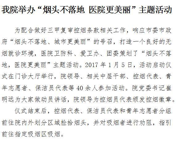 啄木鸟 举办“烟头不落地 医院更美丽”主题活动
