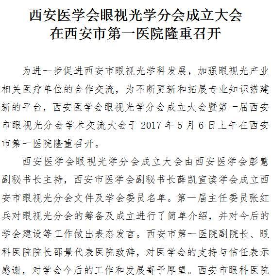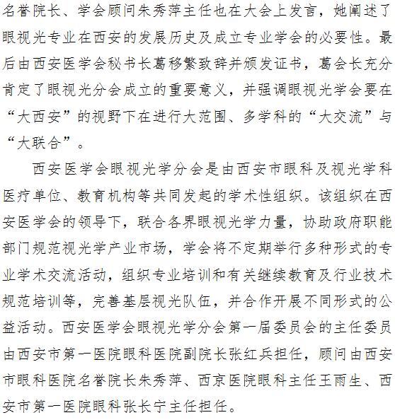 西安医学会眼视光学分会成立大会在啄木鸟 隆重召开