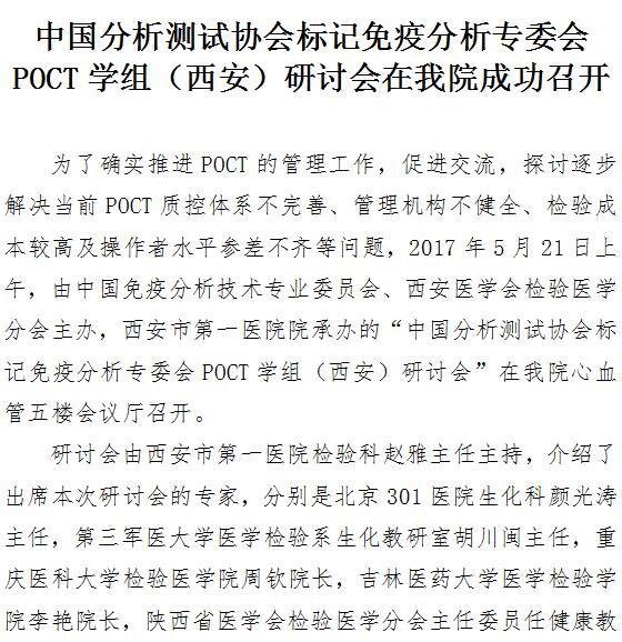 中国分析测试协会标记免疫分析专委会POCT学组(西安)研讨会在啄木鸟 成功召开
