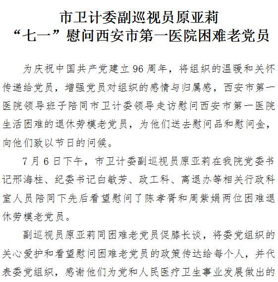 市卫计委副巡视员原亚莉“七一”慰问啄木鸟 困难老党员