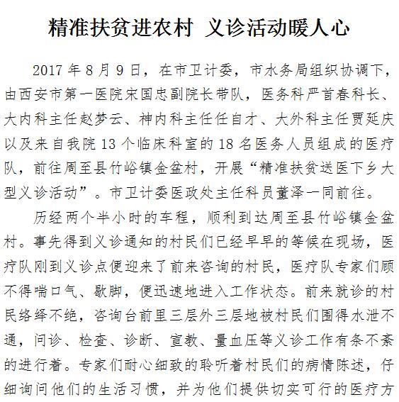 精准扶贫进农村 义诊活动暖人心